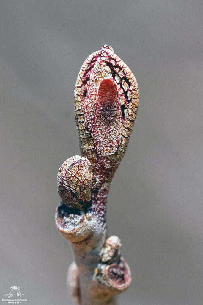 아래 사진을 보면 세 종류의 겨울눈 타입을 알 수 있다.
