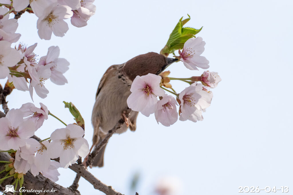 어제 왕송호수에서 참새가 왕벚나무에서 꿀을 도둑질하는 장면을 봤다.