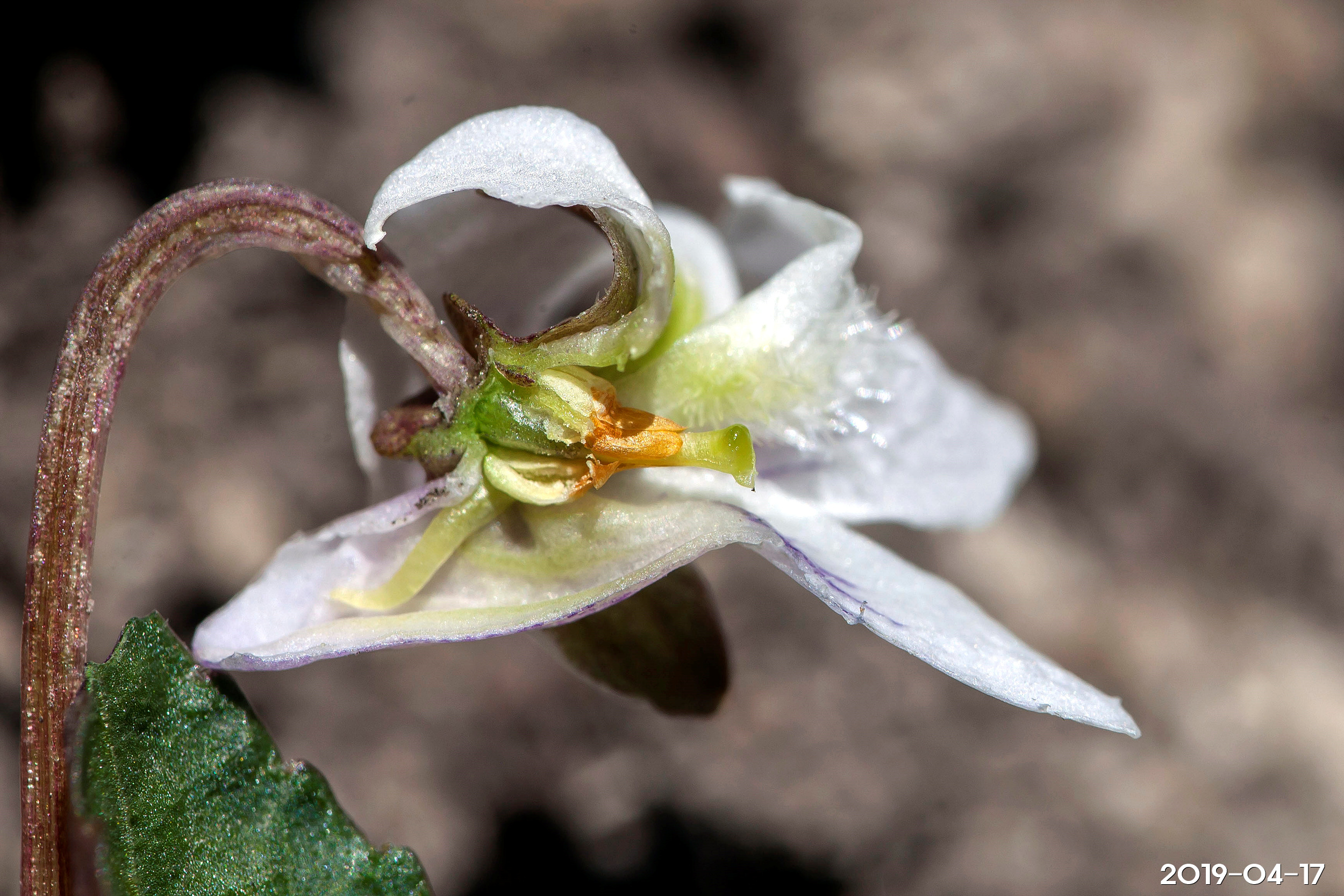 – 꽃: 4~5월, 홍자색, 잎 사이에서 꽃자루가 나와 1개씩 달리며 위쪽에 꽃싸개잎이 있음. 꽃은 좌우 상칭이고 5수성, 꽃받침은 가장자리가 백색 막질, 꽃잎은 보라색 맥이 있으며 곁꽃잎에 털이 약간 있음
