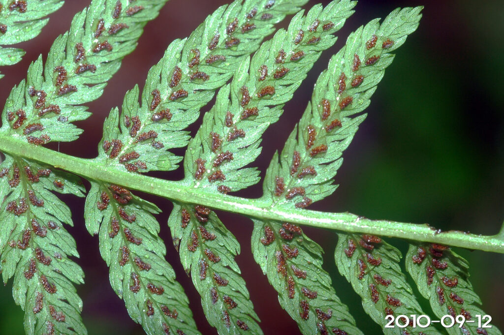 – 포자낭군: 가운데 잎맥과 가장자리의 중간 또는 보다 가운데 잎맥에 치우쳐 붙음