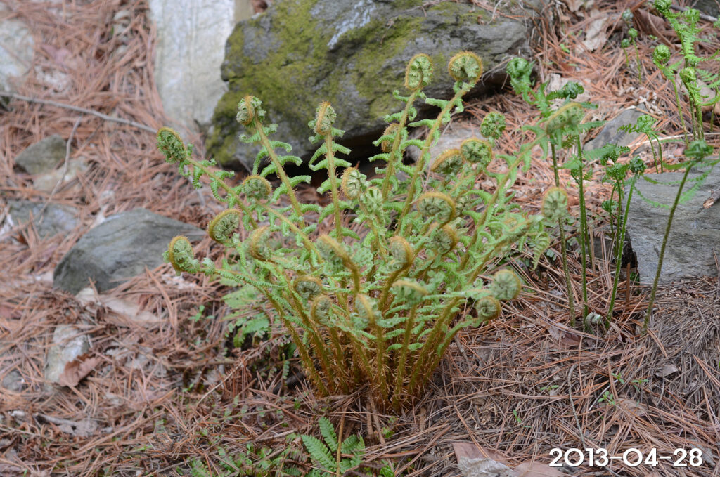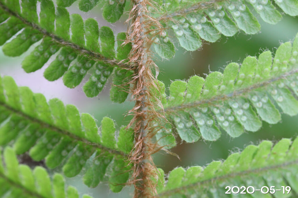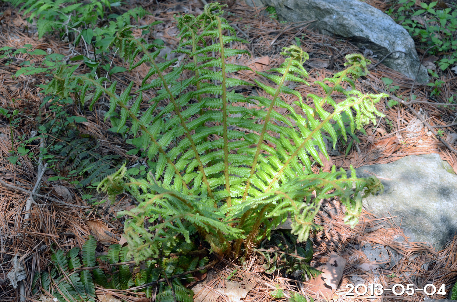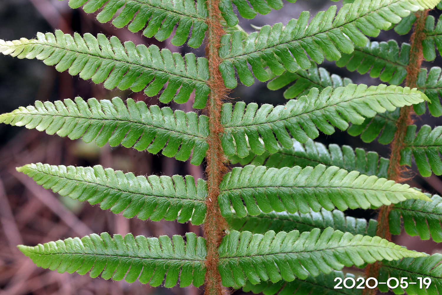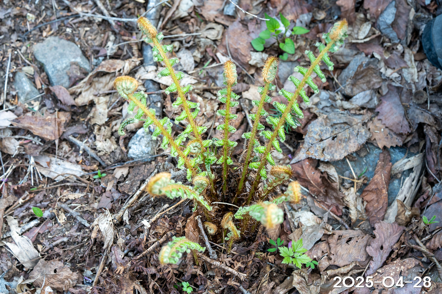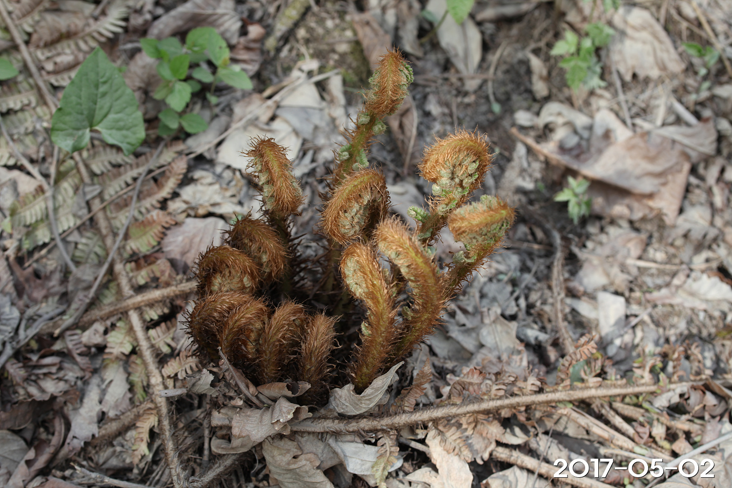 – 비늘조각: 옅은 갈색~짙은 갈색, 난상 피침형~좁은 피침형, 길이 1~3cm, 잎자루 아래쪽에 붙은 비늘조각이 보다 큼