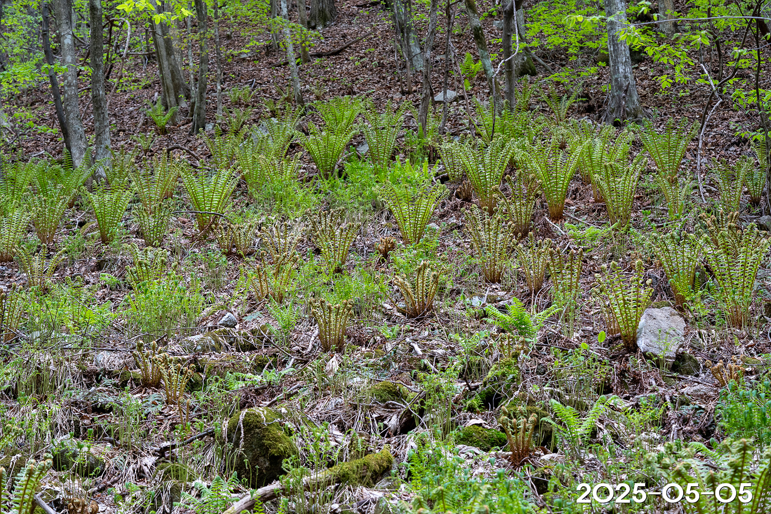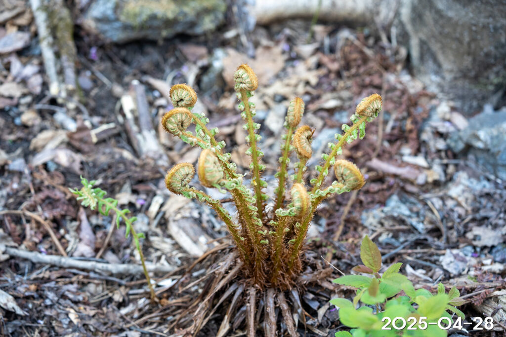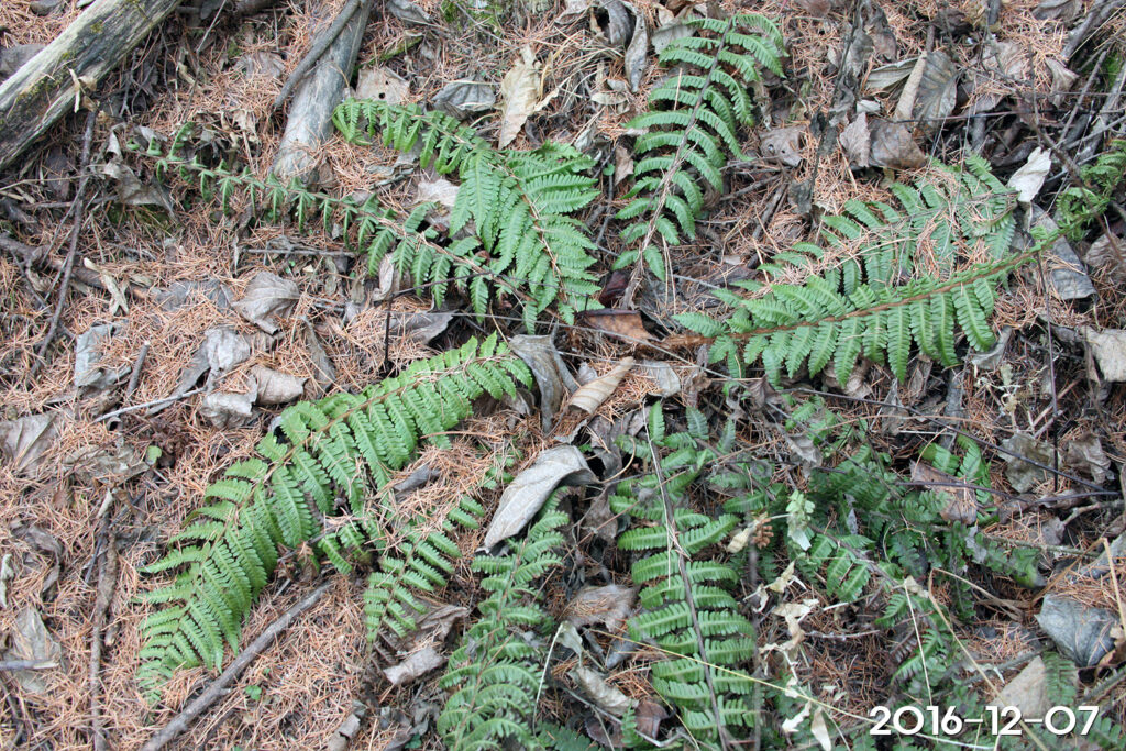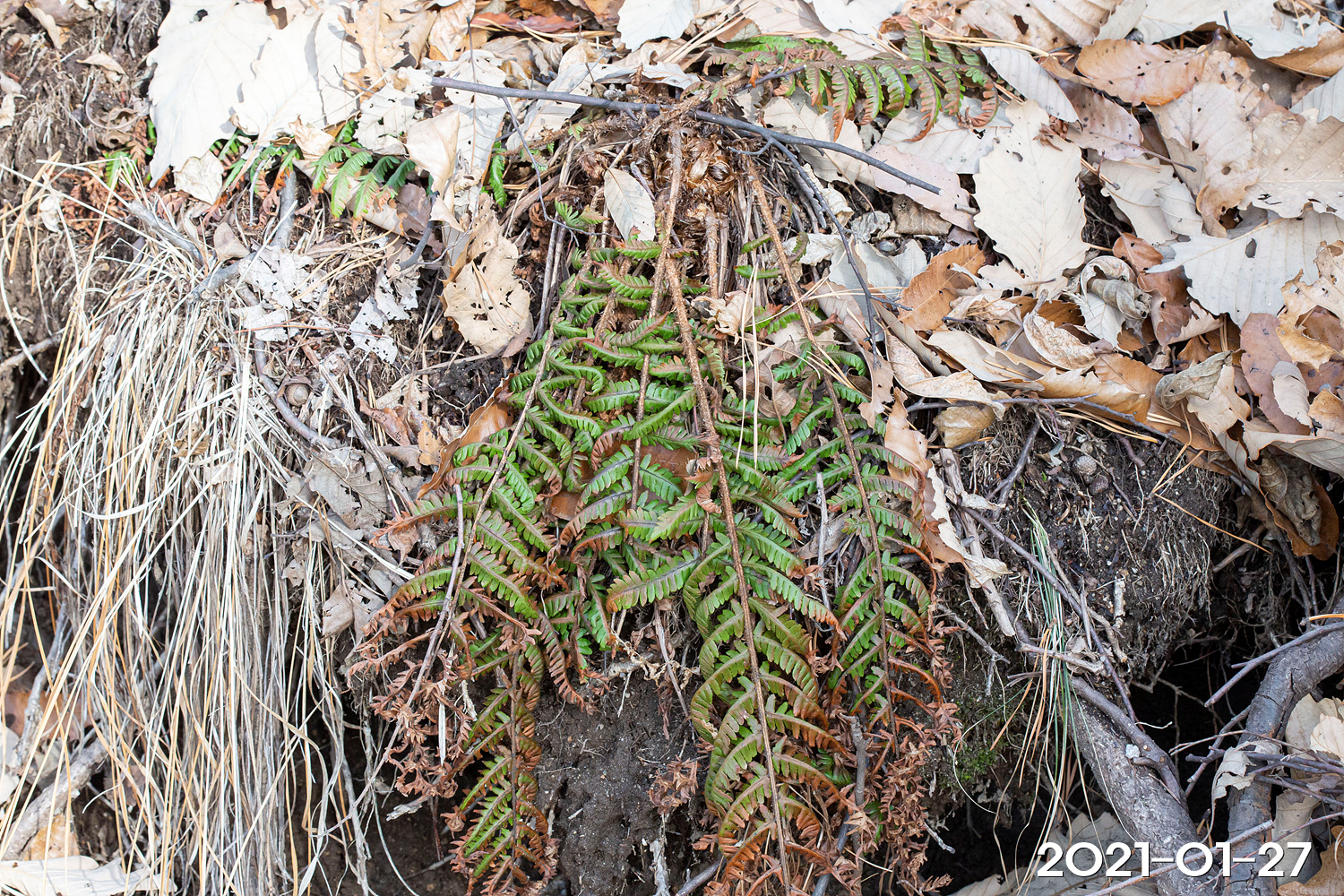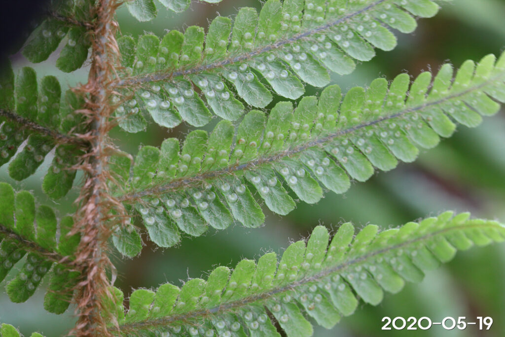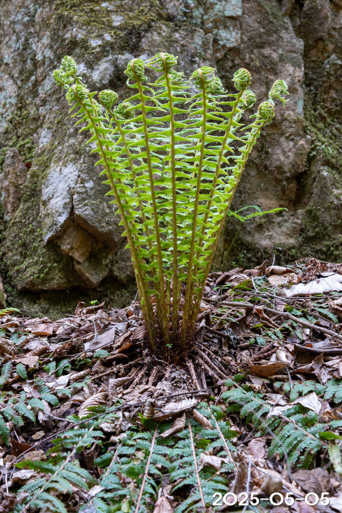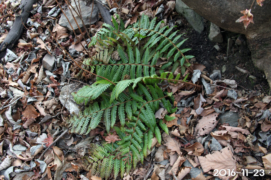 – 비늘조각: 옅은 갈색~짙은 갈색, 난상 피침형~좁은 피침형, 길이 1~3cm, 잎자루 아래쪽에 붙은 비늘조각이 보다 큼