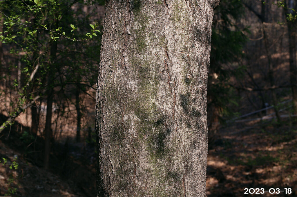 – 수피: 회색, 오래되면 거칠게 갈라짐