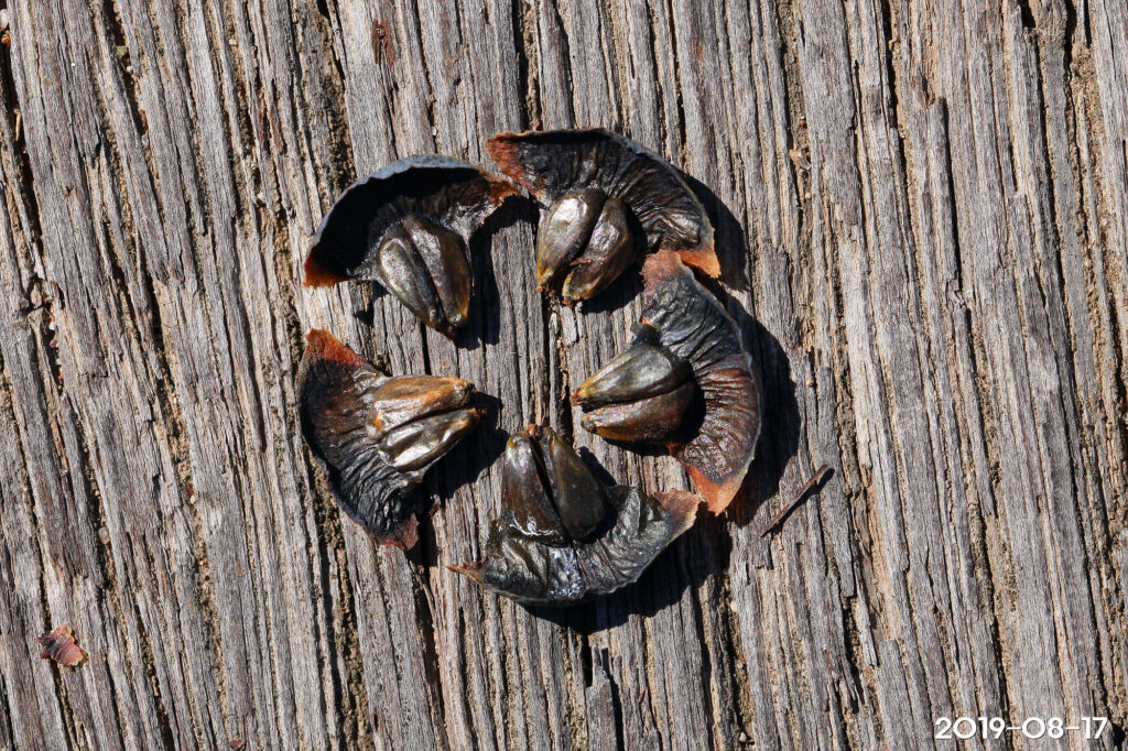 – 암구화수: 장타원형, 검은 자주색에서 밝은 녹색으로 다양하게 나타남. 포편의 상부가 배주 인편 밖으로 노출되어 끝부분이 아래쪽을 향해 젖혀짐