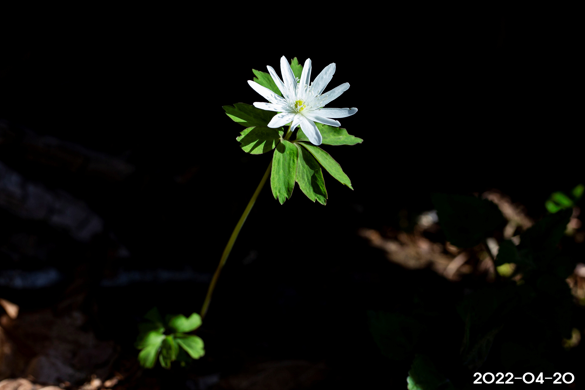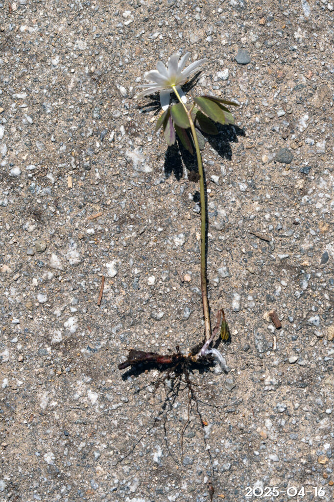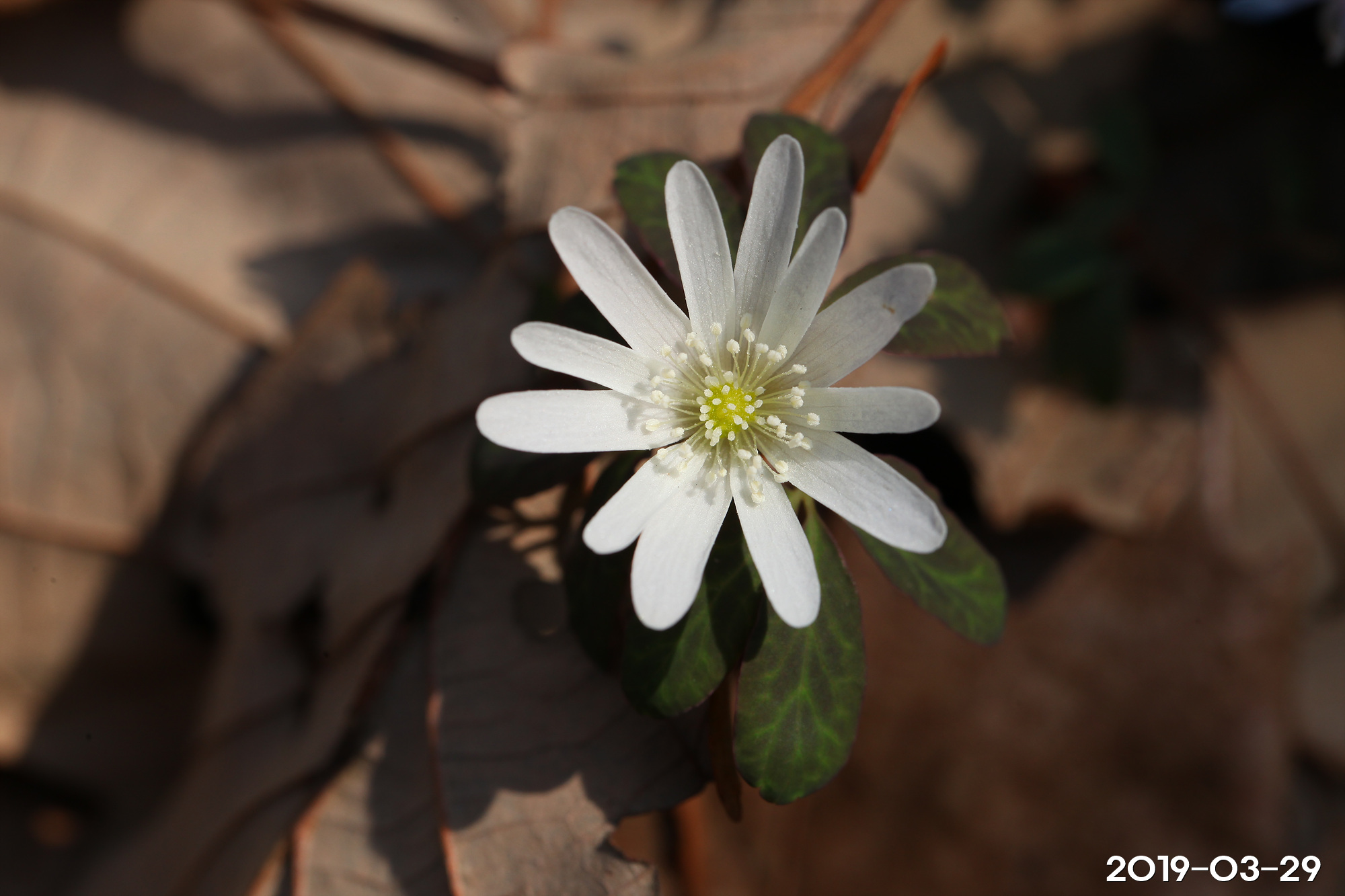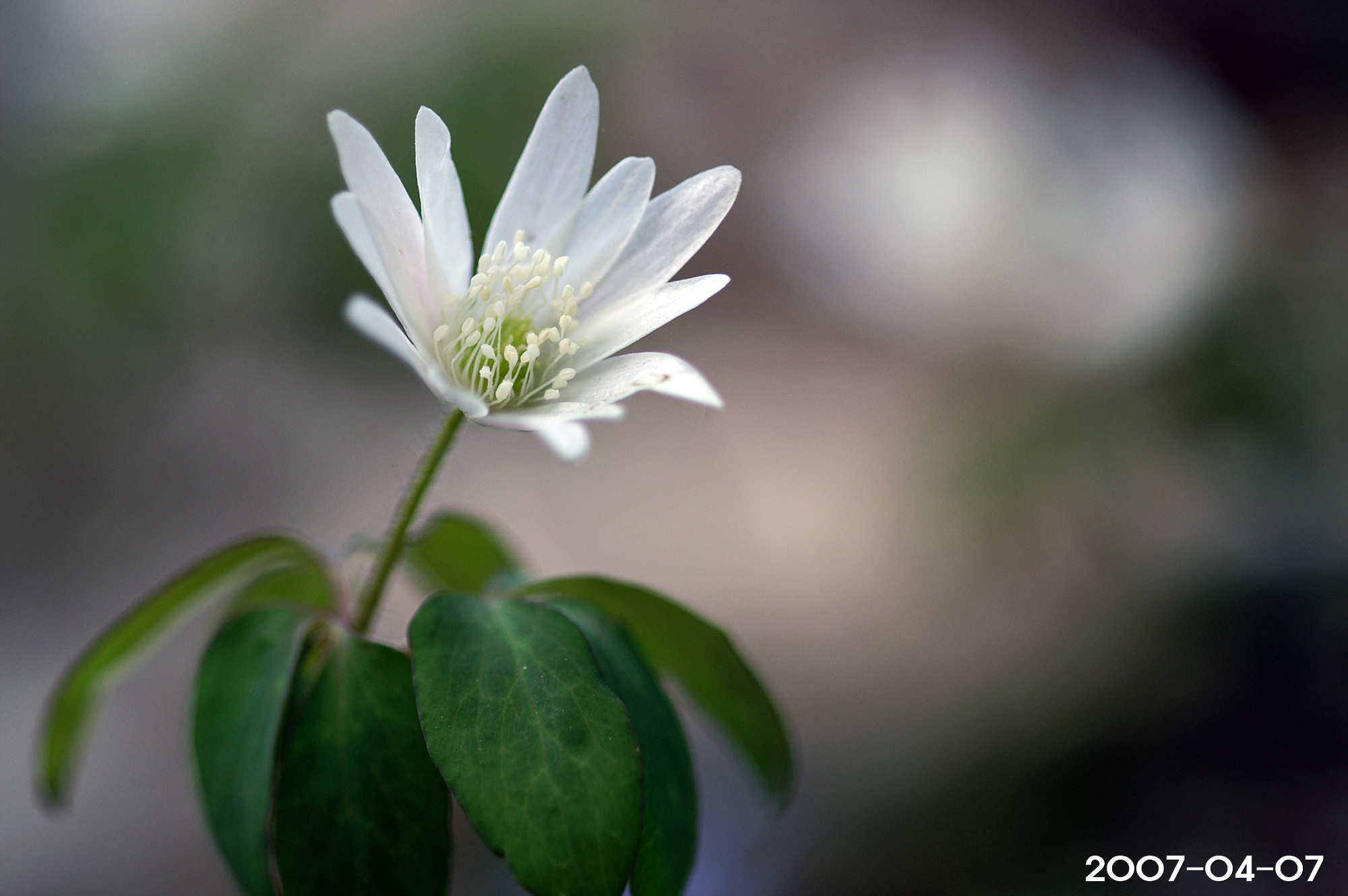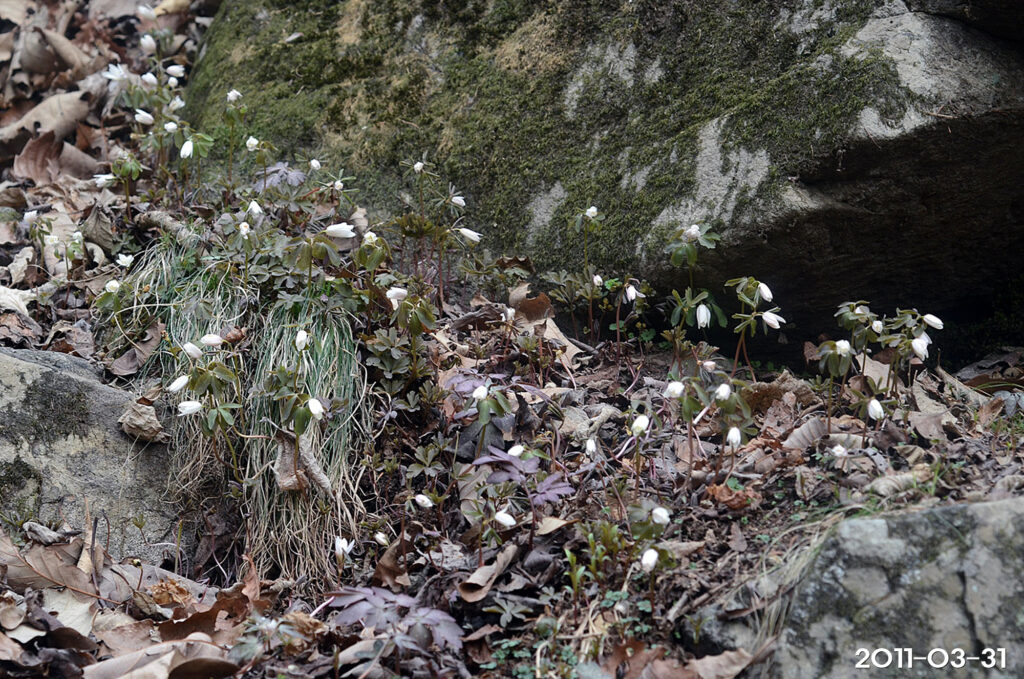 – 꽃: 4~5월, 줄기 끝에 1개씩 개화, 흰색, 지름 3~4cm. 꽃을 받치고 있는 포잎은 3장, 각각 3갈래로 끝까지 갈라짐. 꽃자루는 길이 2~3cm, 긴 털이 있음. 꽃받침잎은 8~13장, 꽃잎처럼 보이고, 긴 타원형, 길이 2cm 정도. 꽃잎은 없음. 수술과 암술은 많고, 꽃밥은 흰색임