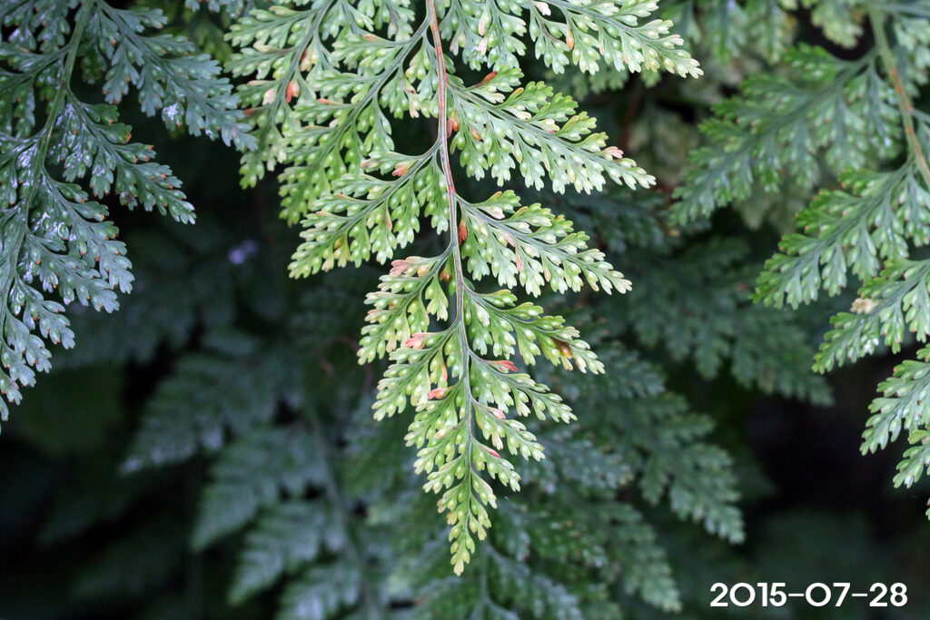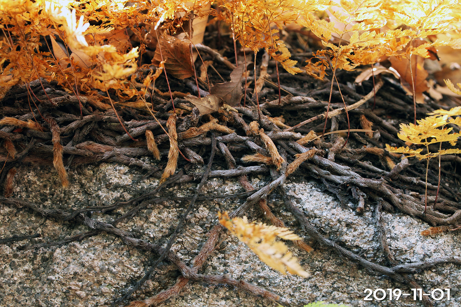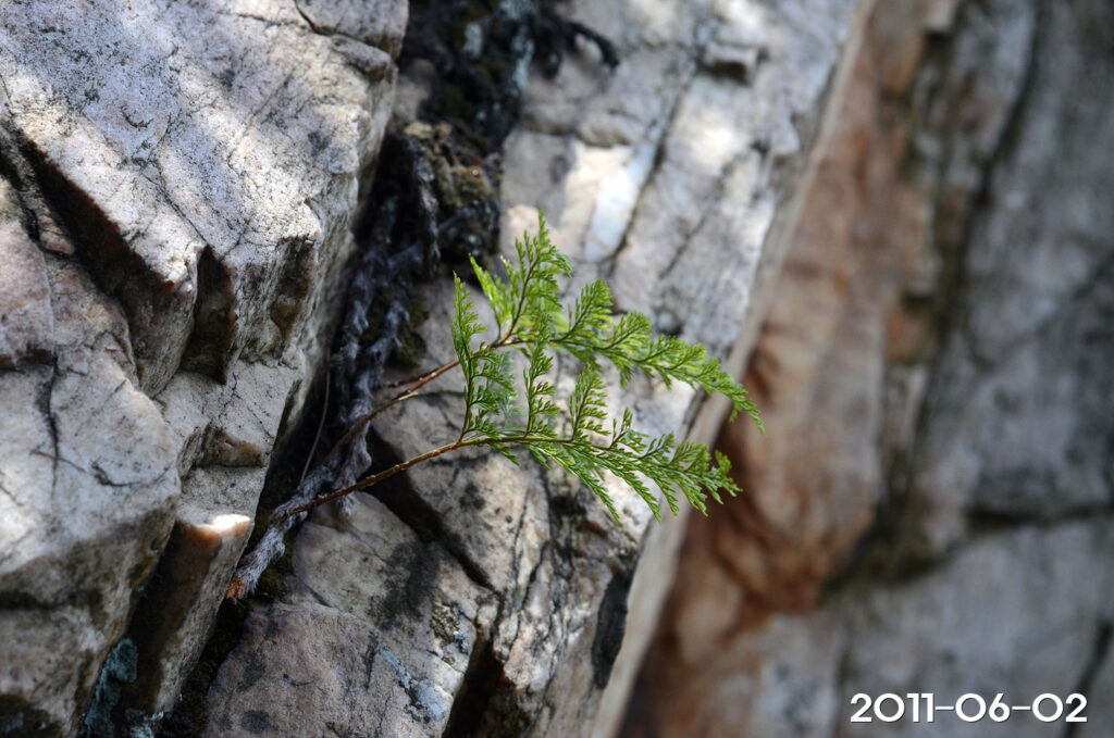 – 뿌리줄기는 바위 위에 노출되어 옆으로 길게 기고, 빽빽이 붙는 비늘조각은 선상 피침형, 방패 모양으로 붙는 점에서 다른 고사리류와 구별된다.