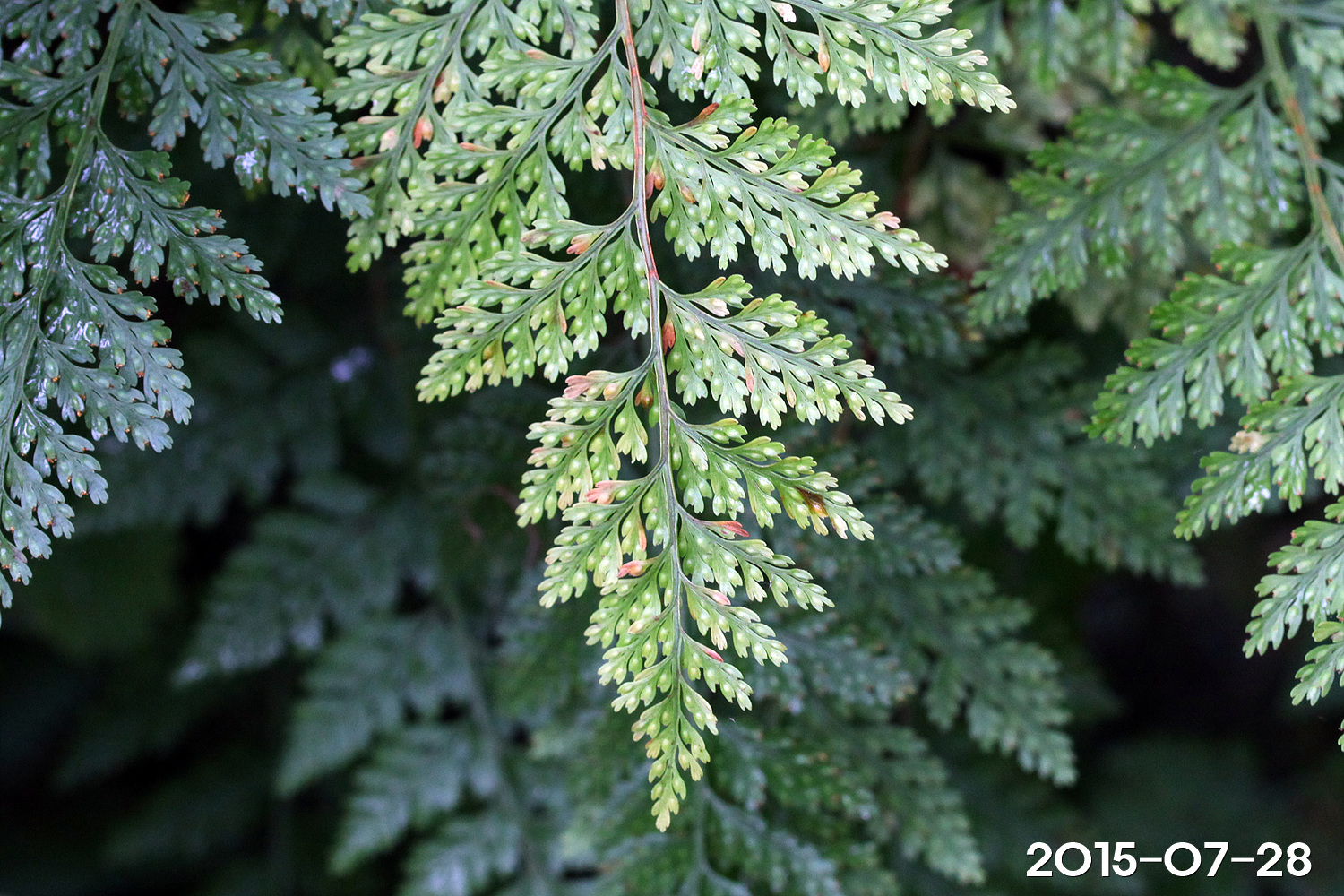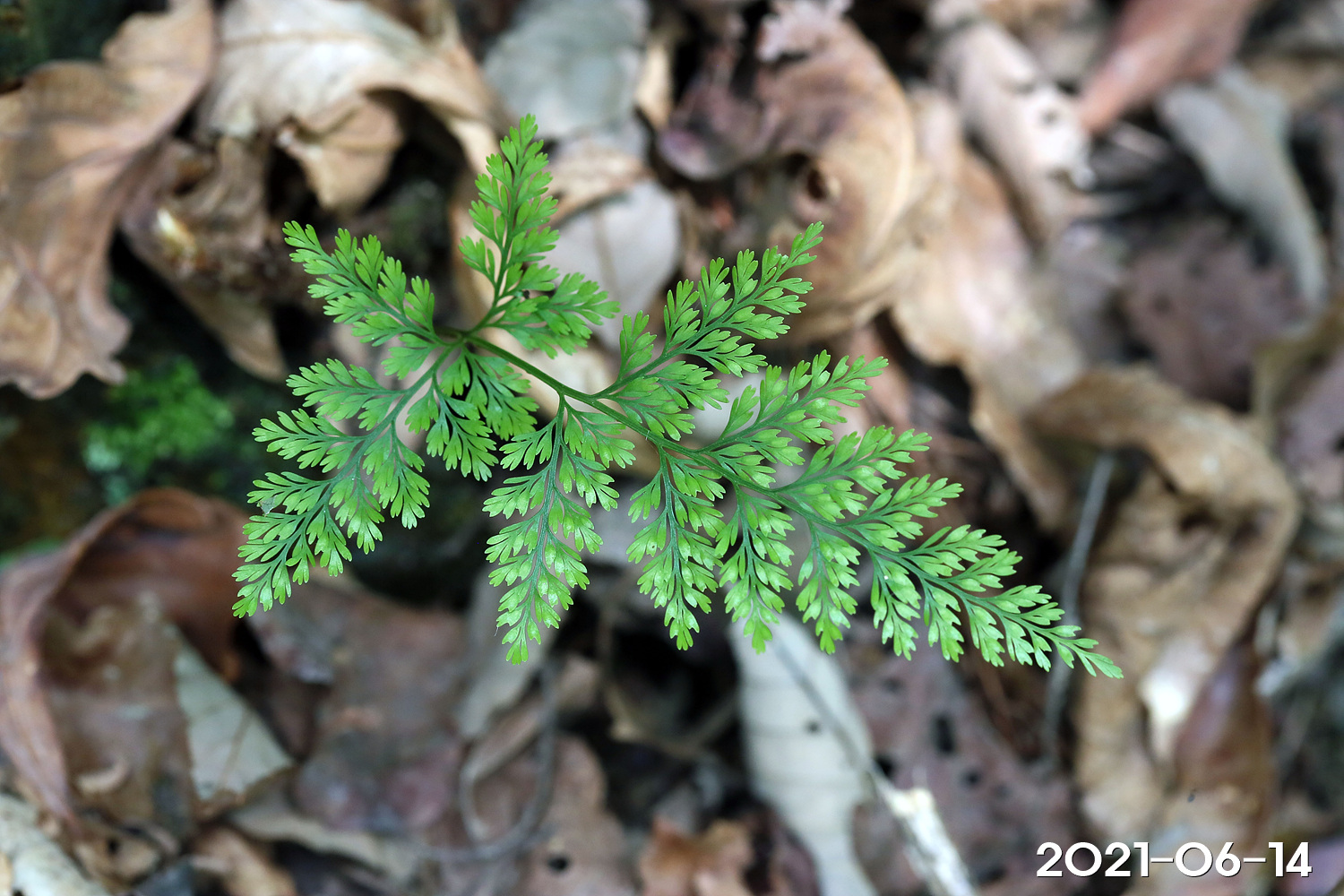 – 잎몸: 삼각상 난형, 길이 10~20cm, 너비 8~15cm, 3~4회 깃꼴로 깊게 갈라짐. 첫째 우편은 가장 크고 각 우편에 대가 있으며 최종 갈라진 조각은 너비 1~2mm의 긴 타원형 또는 피침형