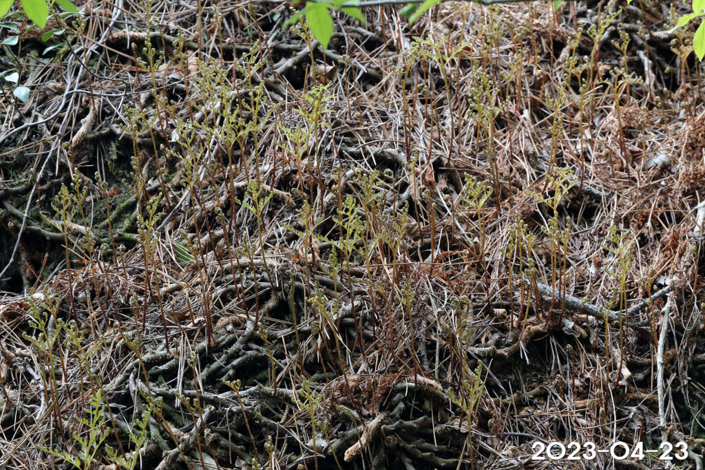 – 뿌리줄기: 지름 3~5mm, 굵고 옆으로 길게 뻗는데 갈색 또는 회갈색, 겉에 선형의 비늘조각이 밀생