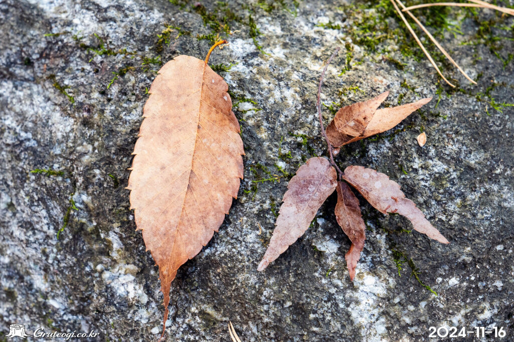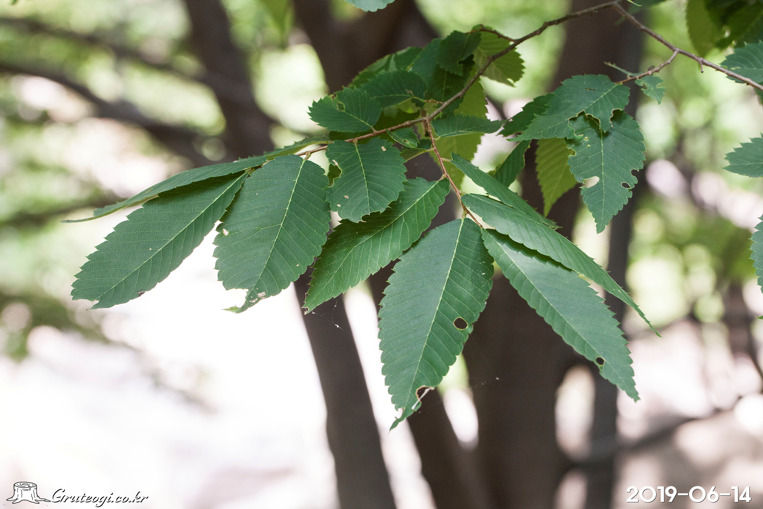 – 잎: 어긋나기, 긴 타원형, 타원형 또는 달걀꼴, 점첨두 예저, 길이 2~7(13)㎝, 너비 1~2.5(5)㎝, 변이가 심함. 가장자리는 단거치, 양면의 털은 점차 없어짐. 측맥은 8~14쌍