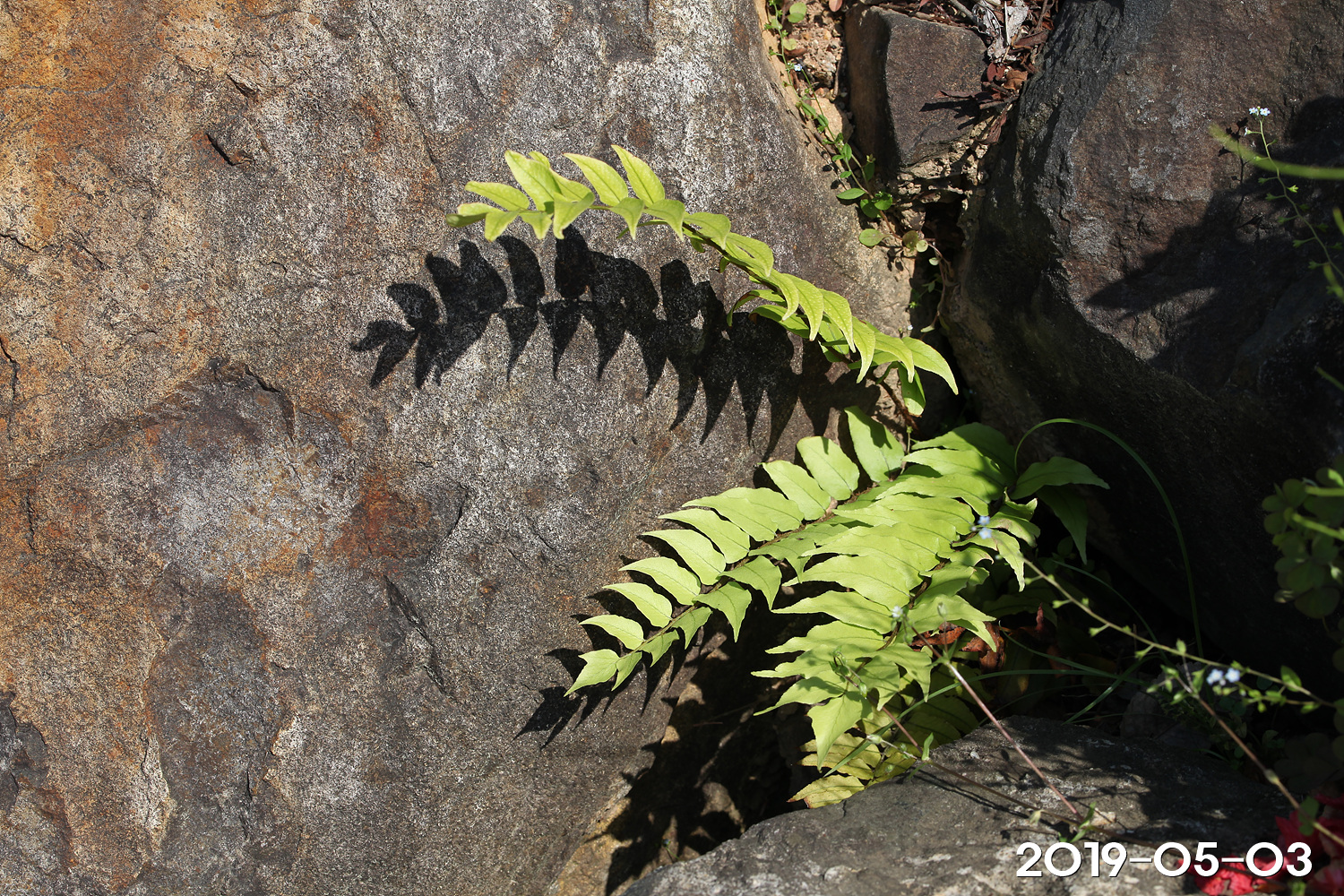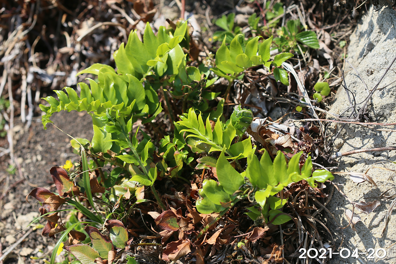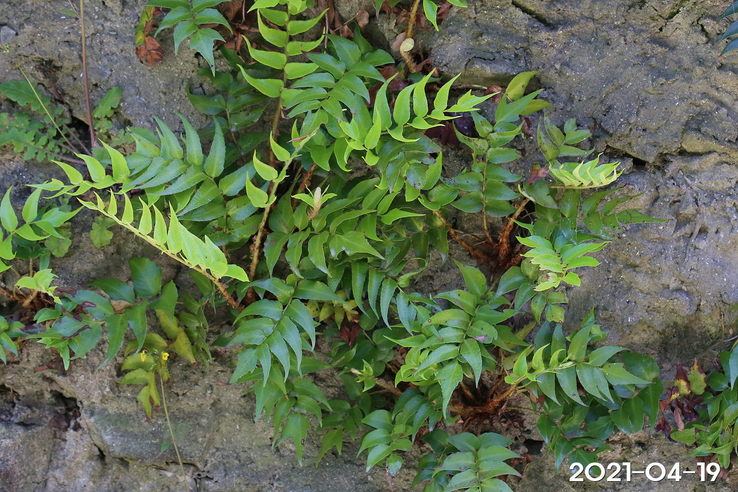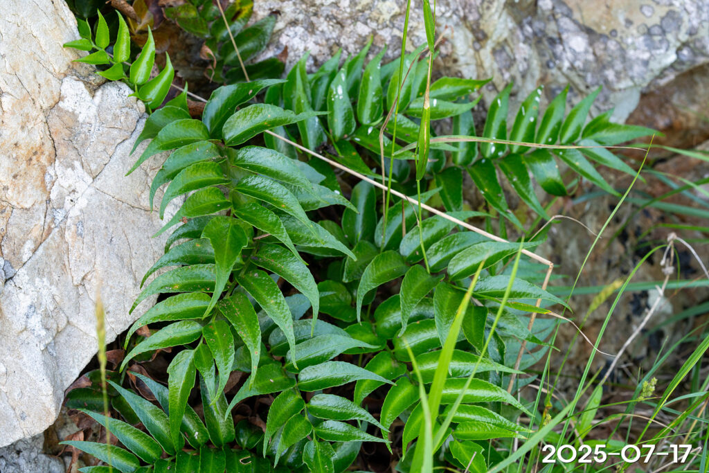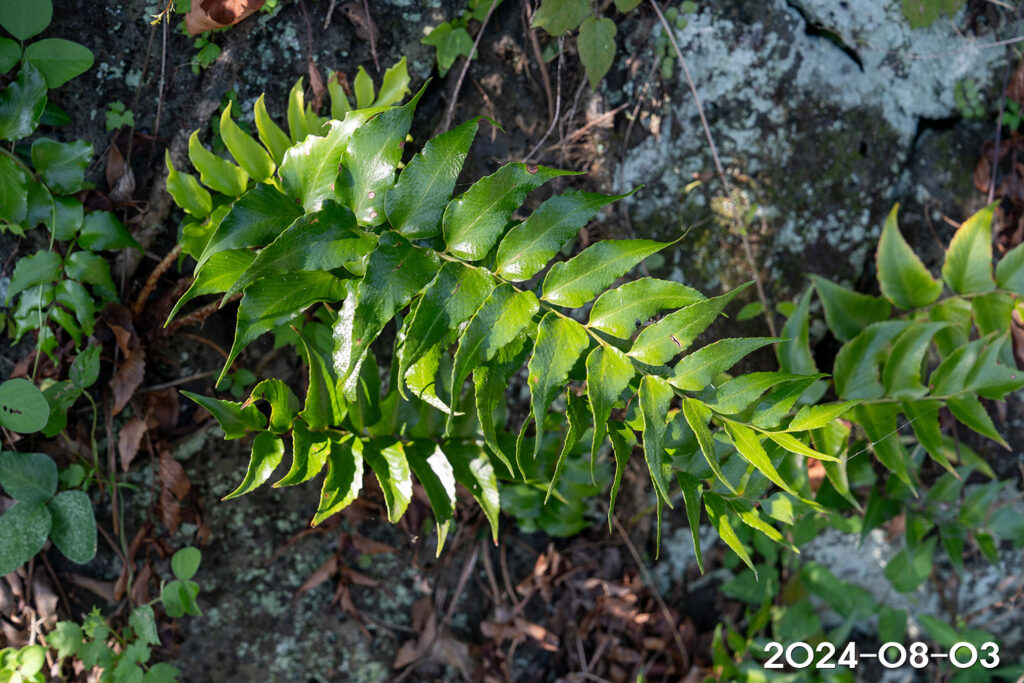 – 잎: 땅속줄기 끝에서 여러 장이 모여남. 깃꼴겹잎이며 혁질