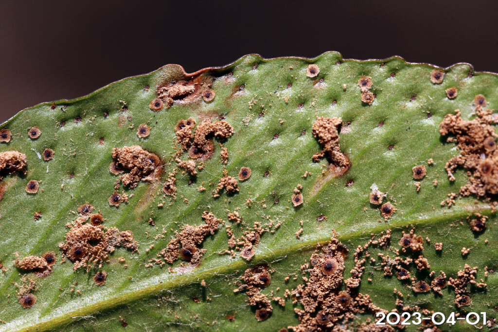 – 포자낭군: 잎 뒷면 전체에 퍼져 달림