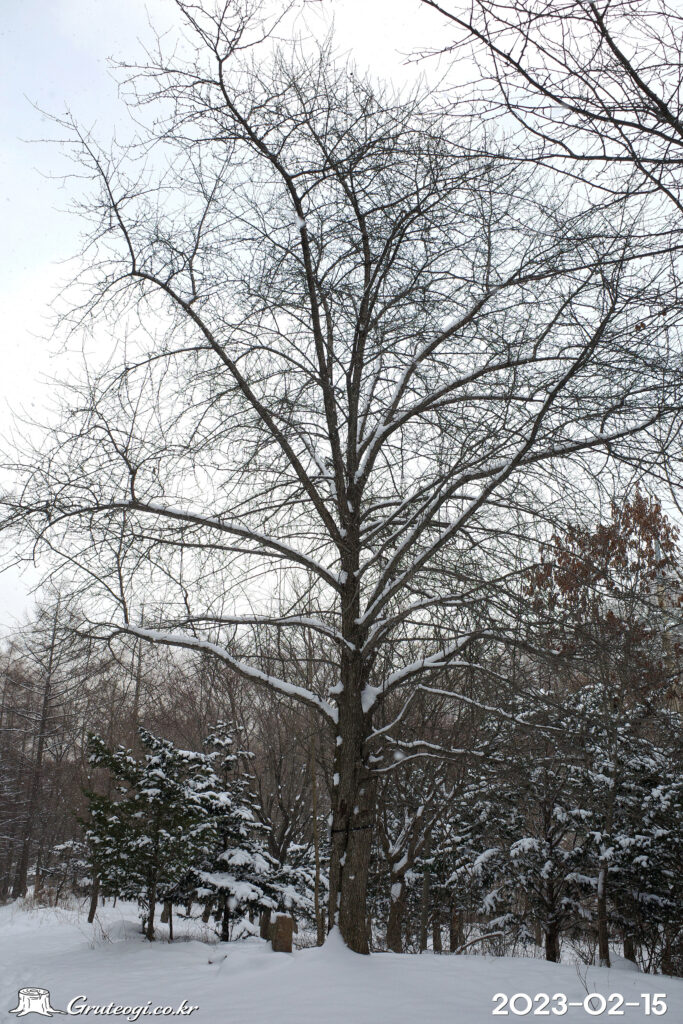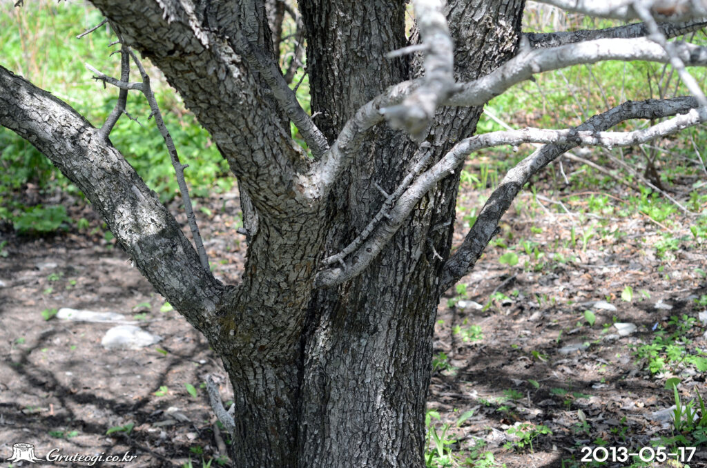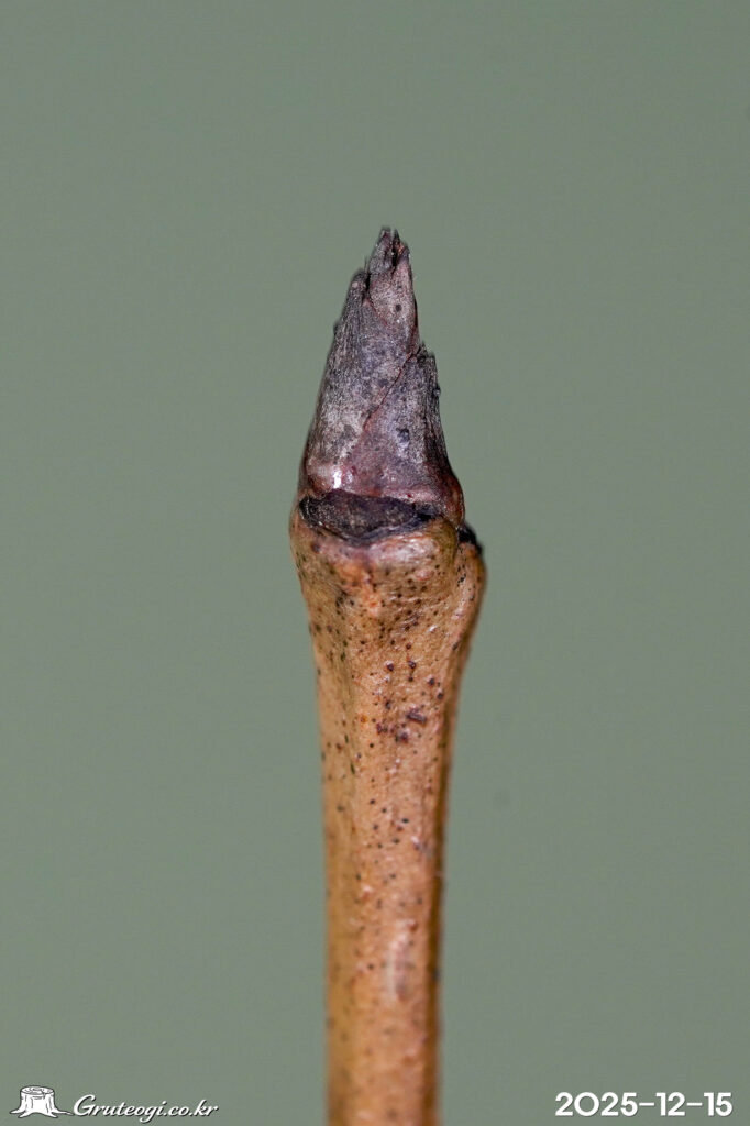 – 줄기: 높이 15m쯤, 수피는 어두운 회색. 어린가지는 회갈색 또는 자갈색, 묵은 가지는 황갈색을 띰
