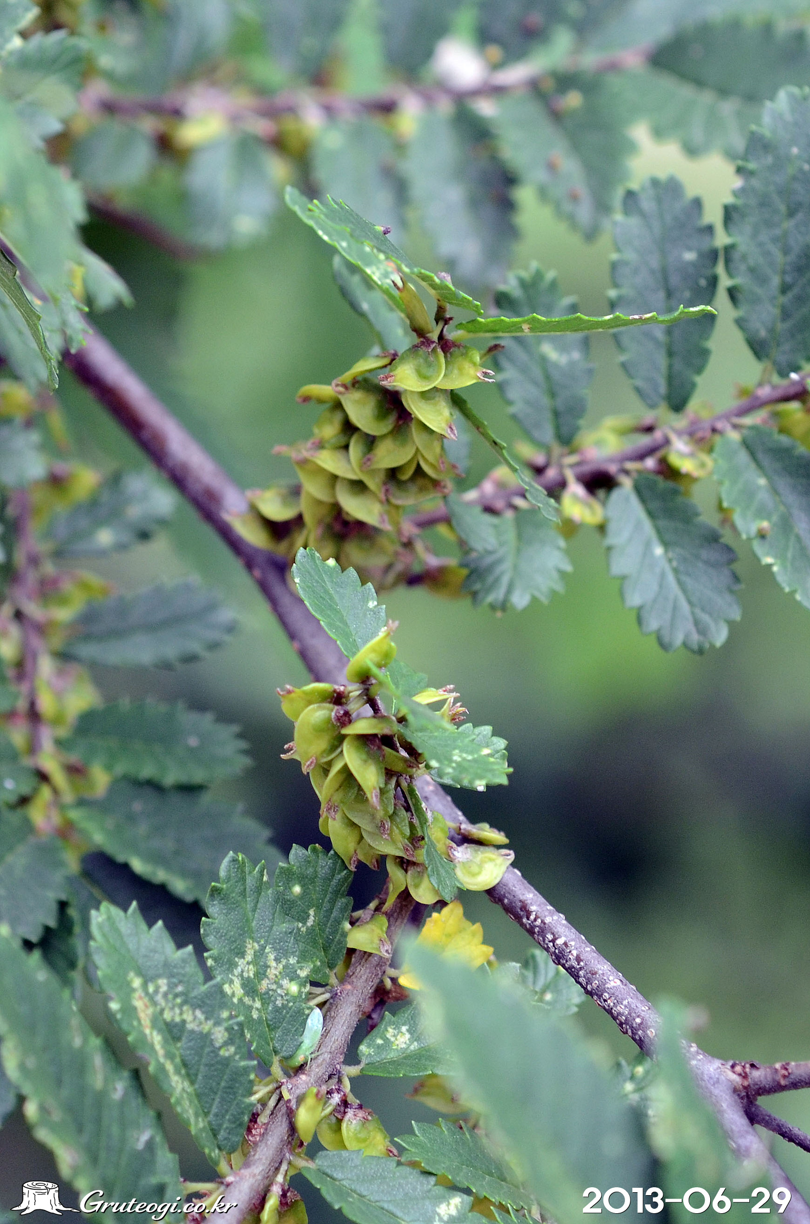 – 열매: 시과, 길이 5~6mm, 한쪽에만 날개가 발달, 6월에 익어 8~9월까지 붙어 있음