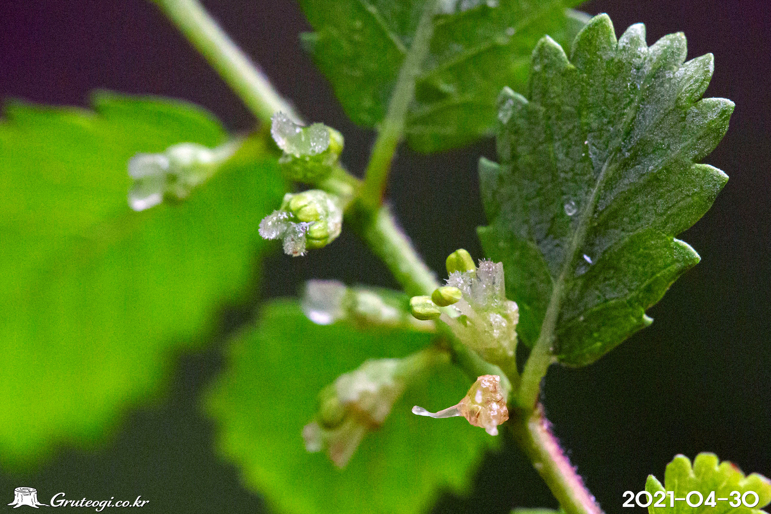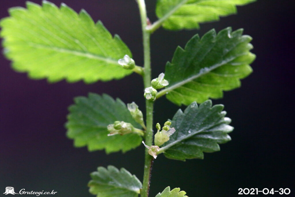 – 꽃: 4~5월, 어린가지의 잎겨드랑이에 1~4개씩 개화. 꽃자루는 길이 1~4mm로 털이 없음. 화피는 길이 1~2mm, 4~5갈래로 갈라짐