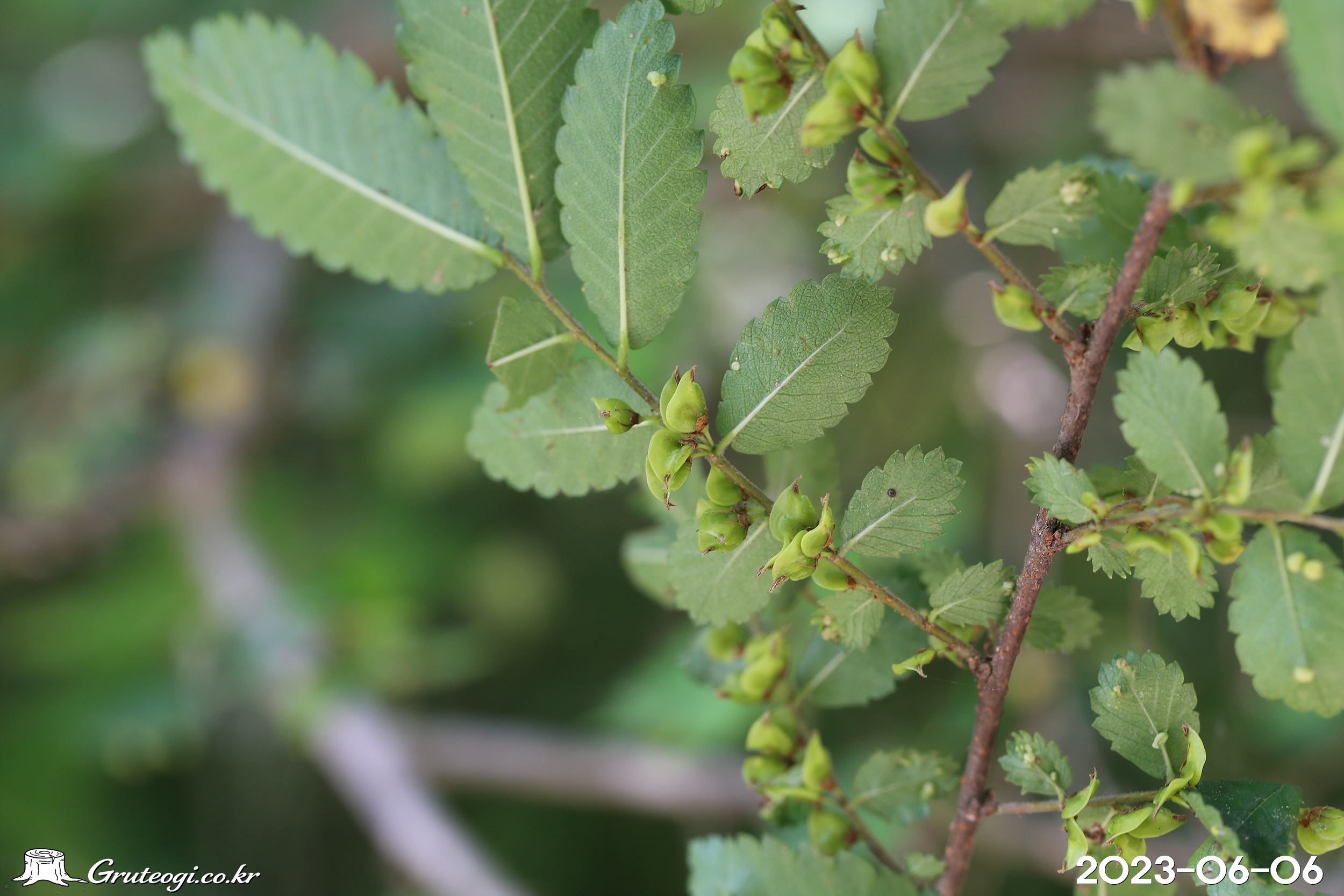 느릅나무속(Ulmus)에 비해 가지에 가시가 발달하고, 열매는 비대칭으로 한쪽에만 날개가 있으므로 구별된다.