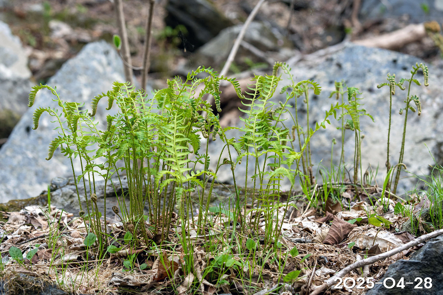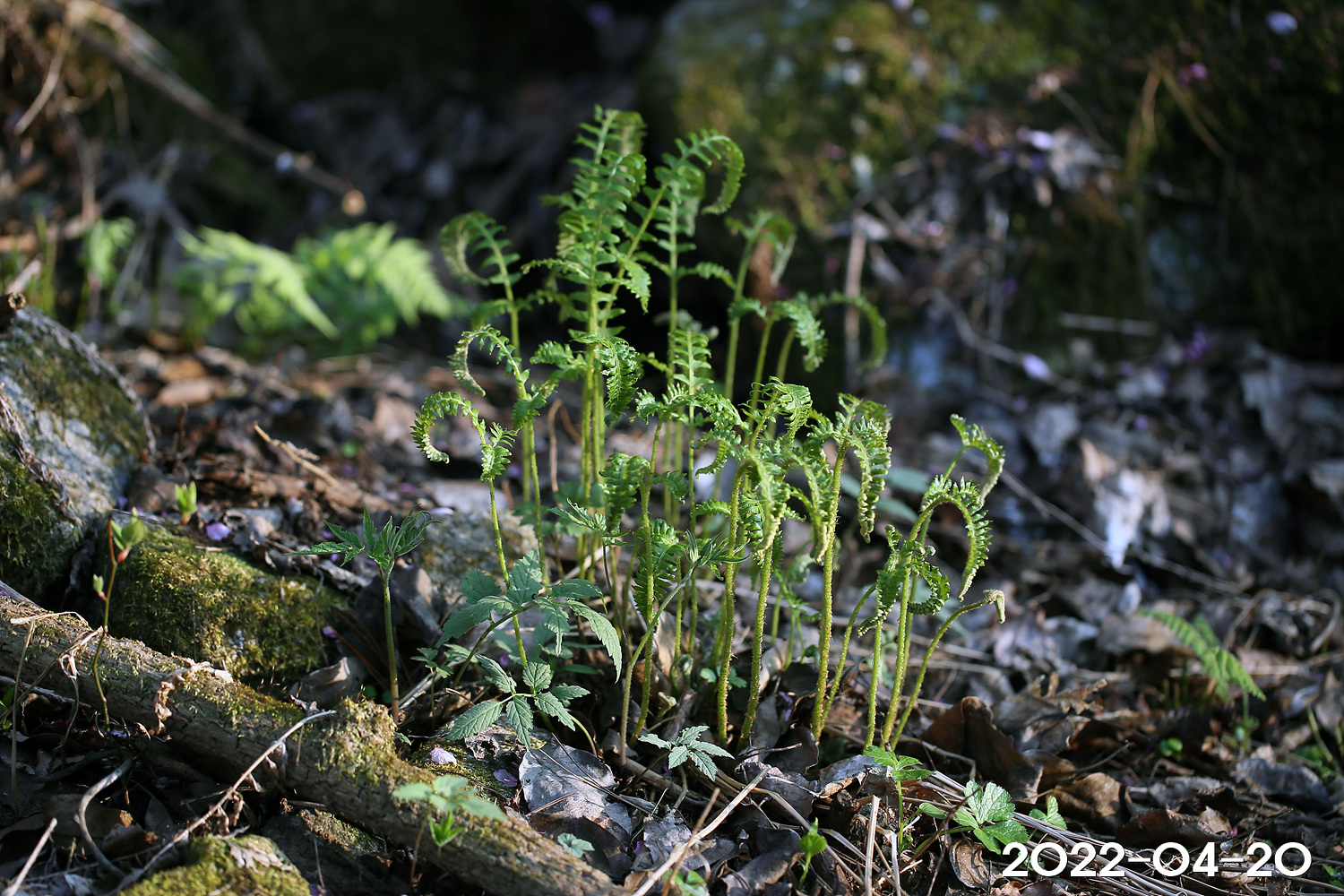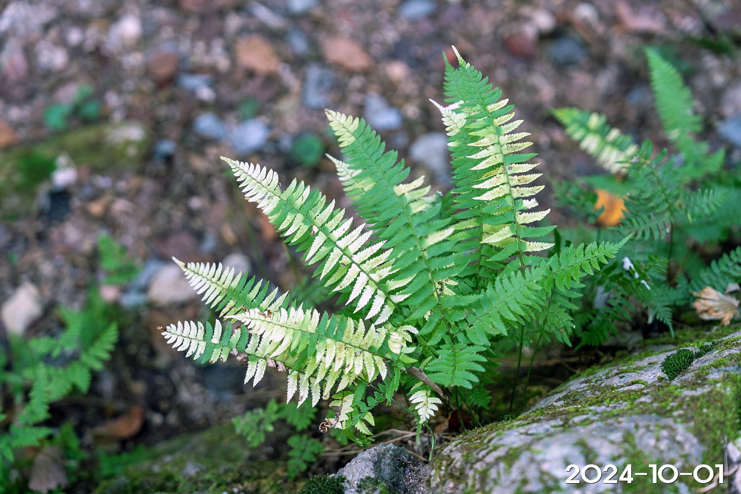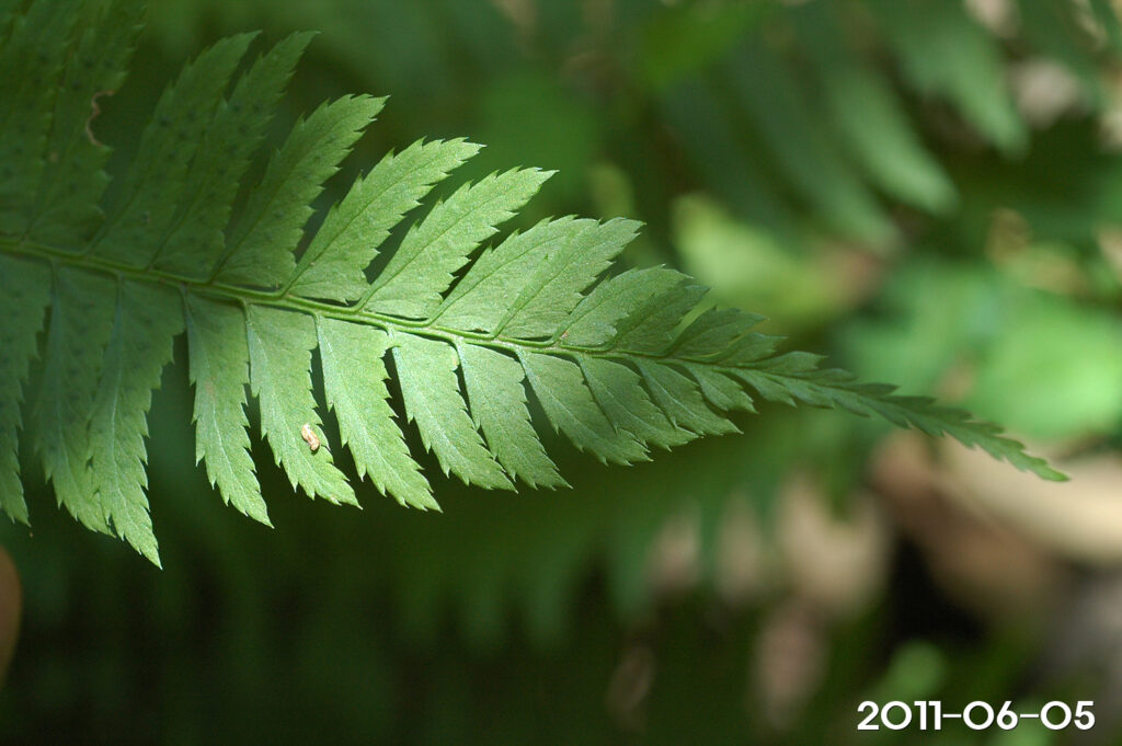 – 잎몸: 1회 우상으로 갈라지고, 길이 30~50cm, 맨 아래 우편이 크게 발달해 전체가 십자 모양을 이룸. 우편 중축에 붙는 비늘조각은 숙존성