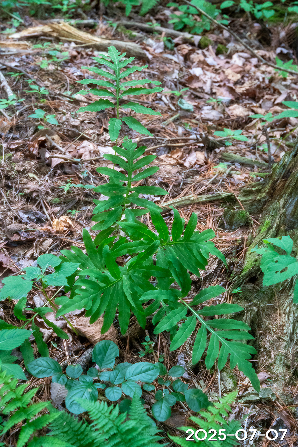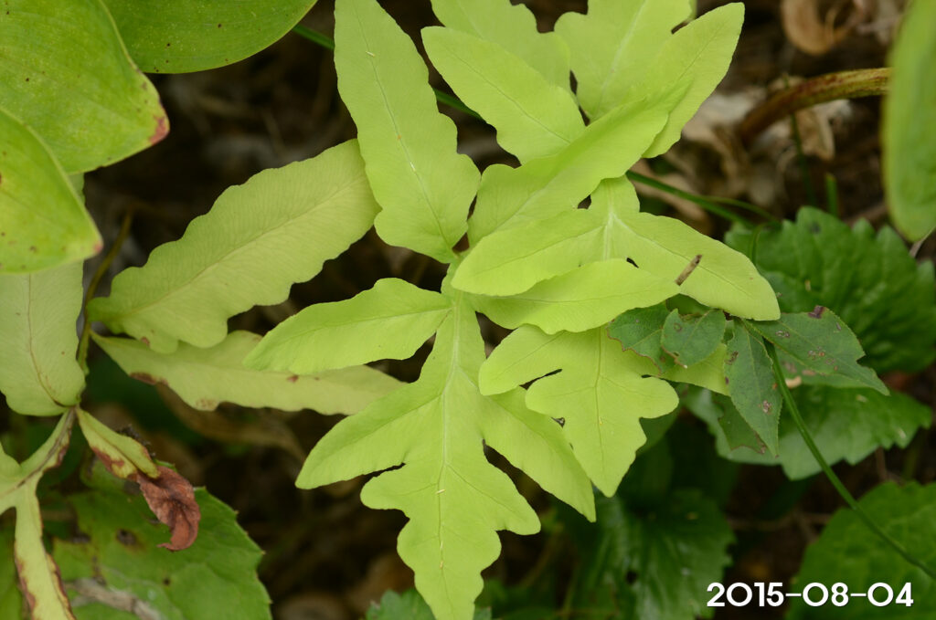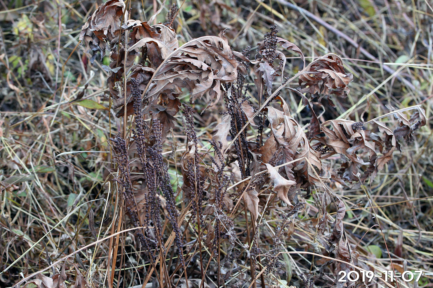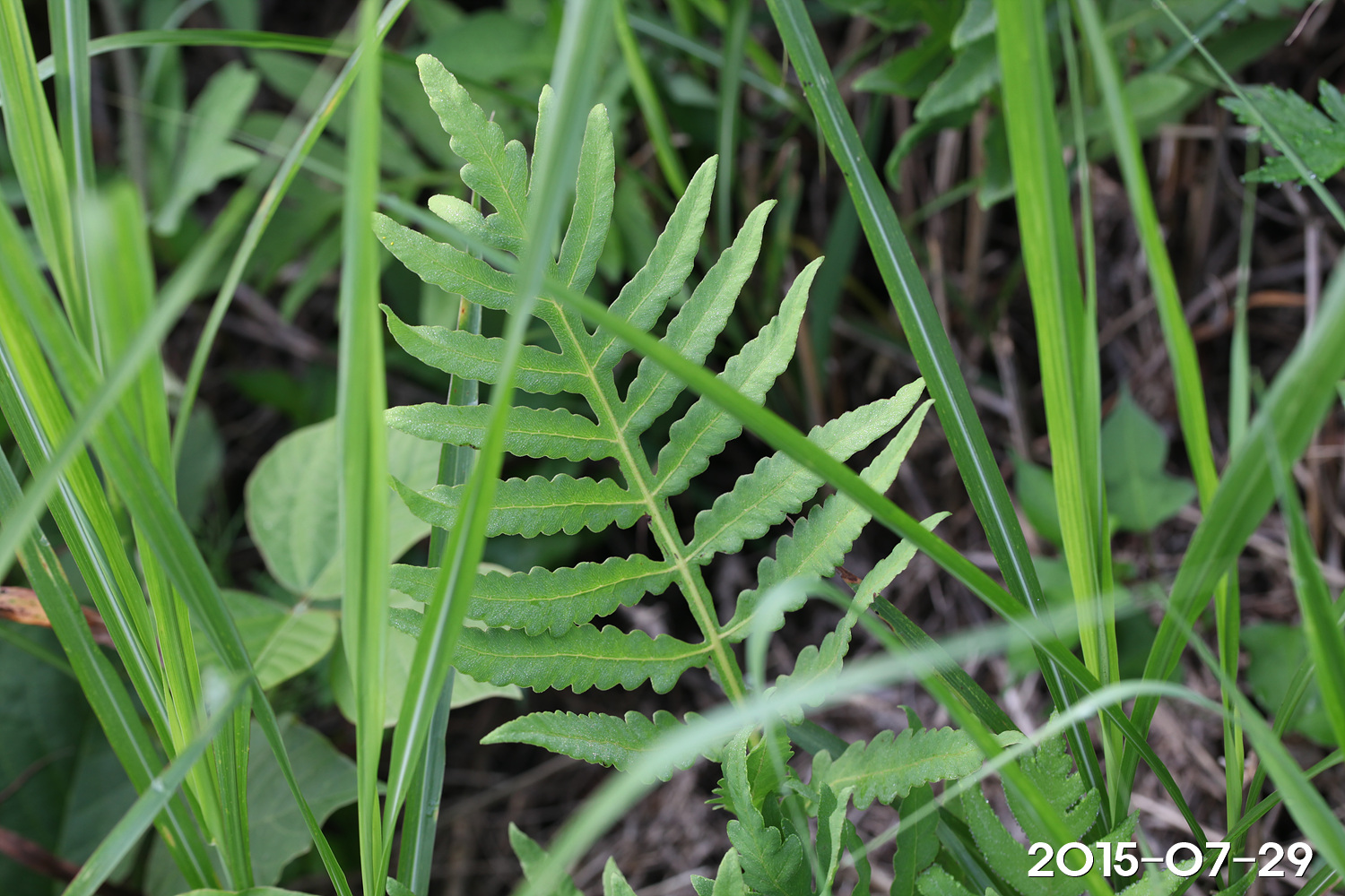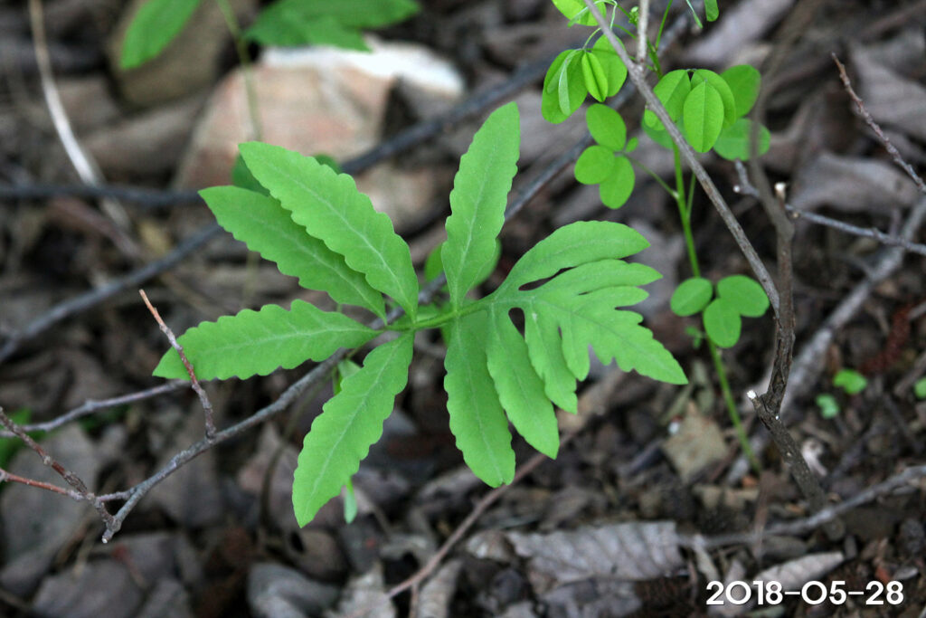 – 영양잎: 잎자루는 길이 10~50cm, 비늘조각은 난형, 길이 2~4mm, 연한 갈색. 잎몸은 삼각상 타원형, 길이 10~30cm, 폭 8~20cm, 우편은 5~11쌍. 우편은 장타원형 또는 피침형, 가장자리에 물결 모양 톱니가 있으며, 위쪽의 우편은 밑이 중축으로 흘러 날개를 이룸