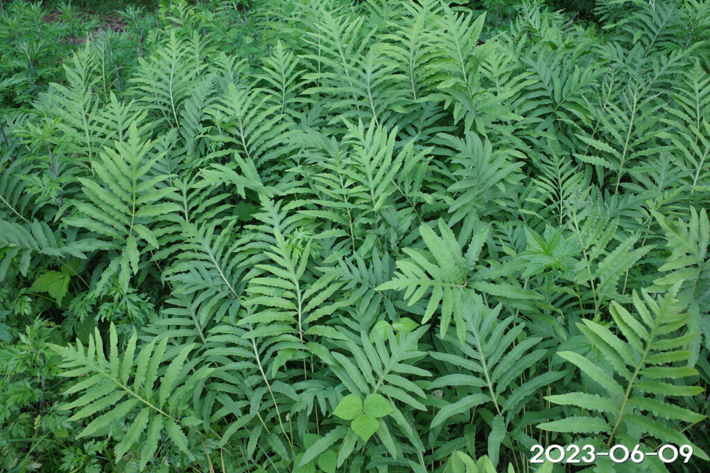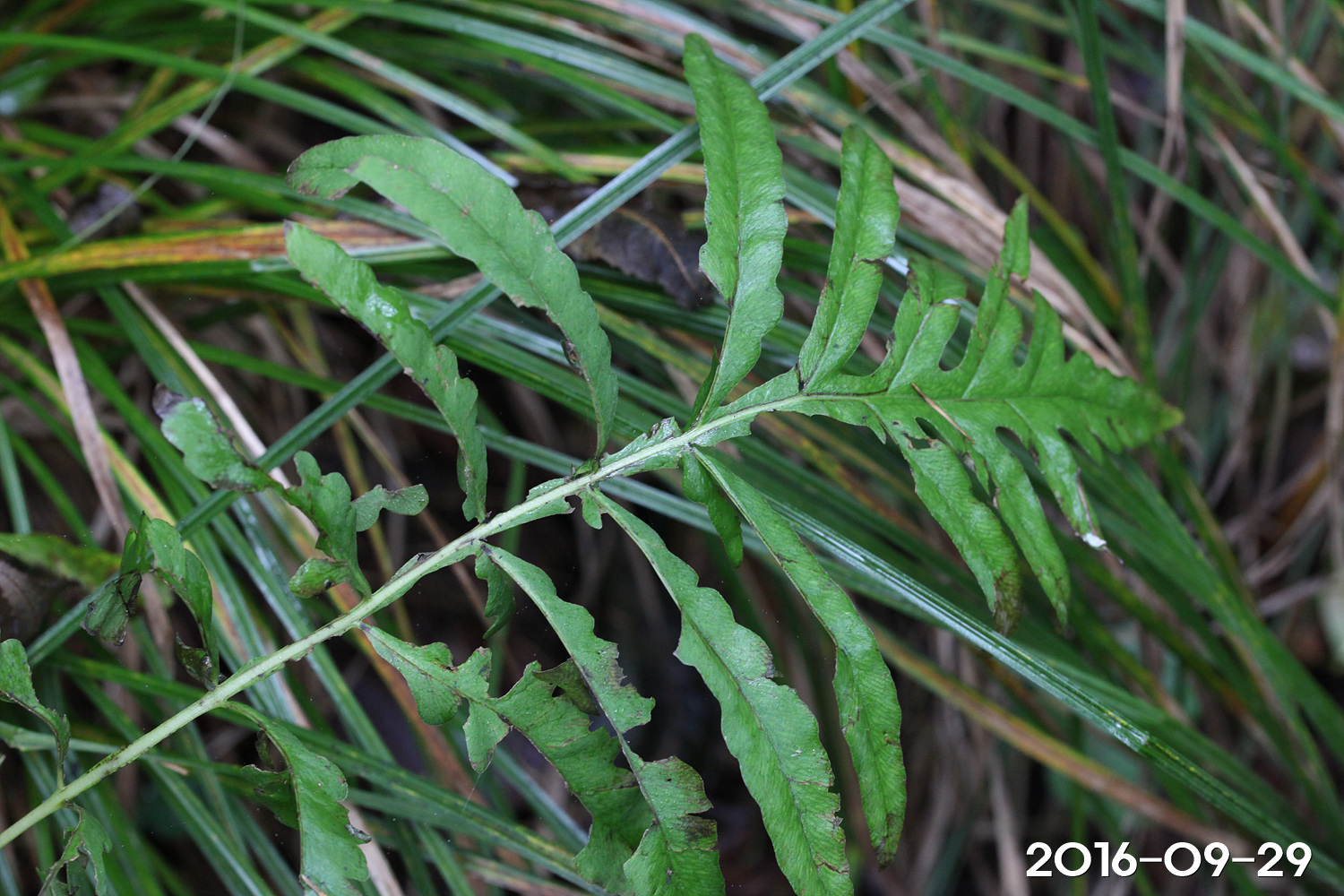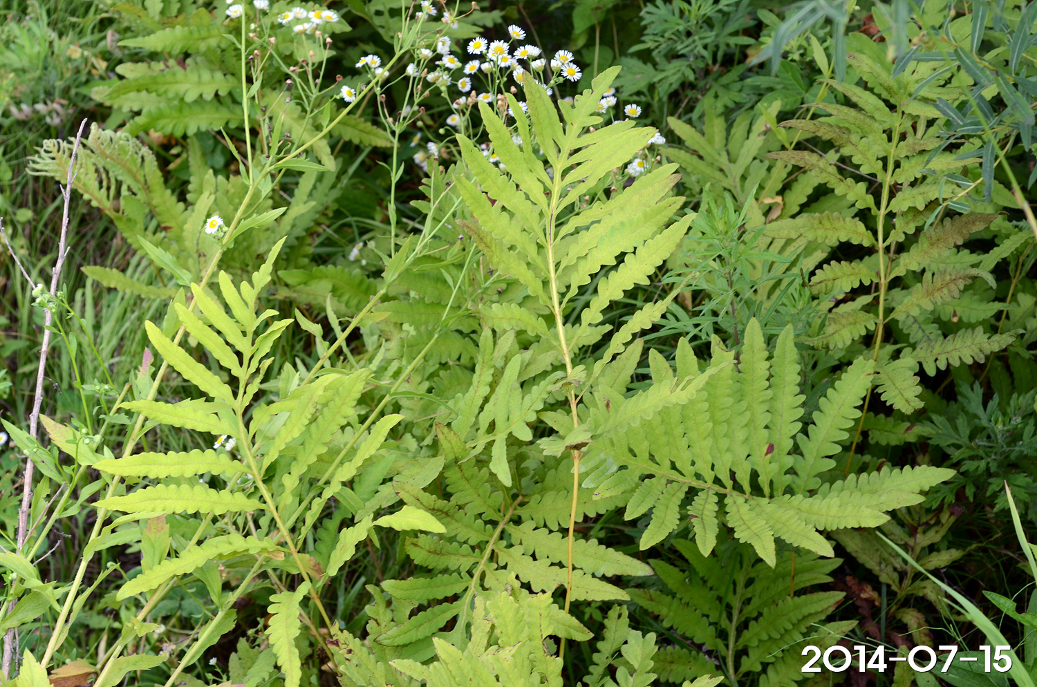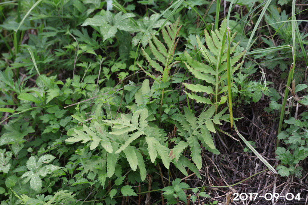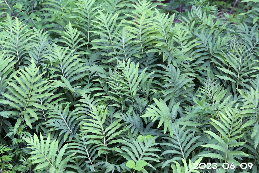– 영양잎: 잎자루는 길이 10~50cm, 비늘조각은 난형, 길이 2~4mm, 연한 갈색. 잎몸은 삼각상 타원형, 길이 10~30cm, 폭 8~20cm, 우편은 5~11쌍. 우편은 장타원형 또는 피침형, 가장자리에 물결 모양 톱니가 있으며, 위쪽의 우편은 밑이 중축으로 흘러 날개를 이룸