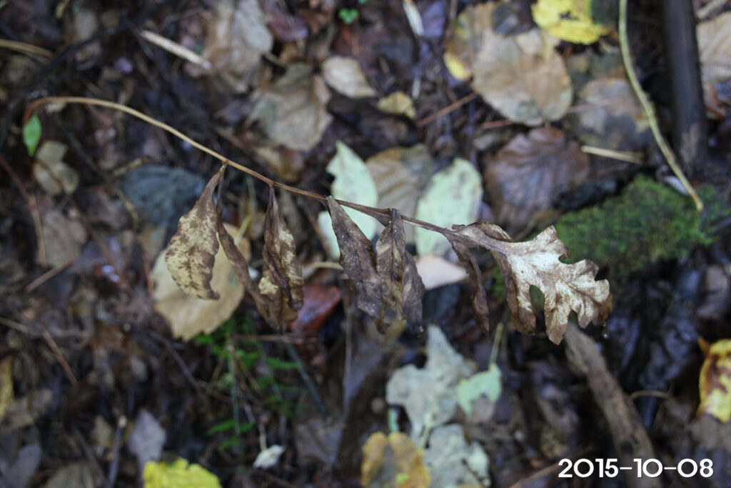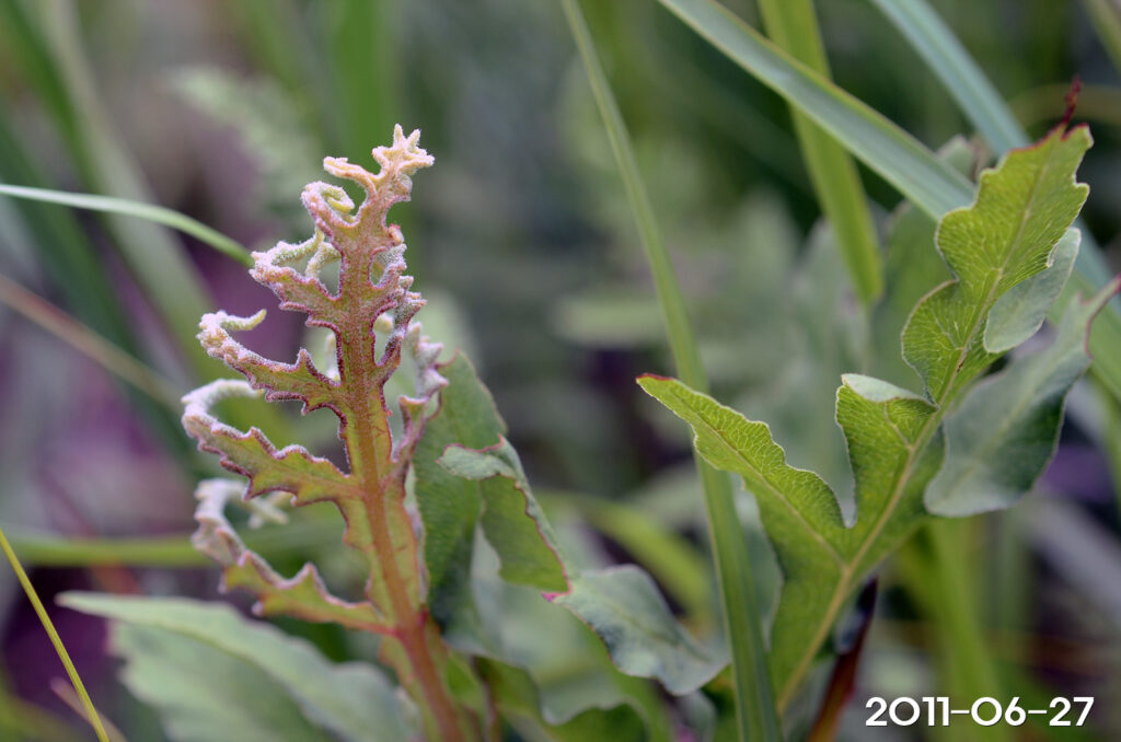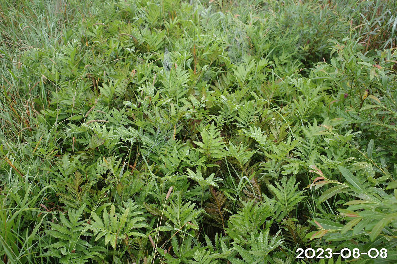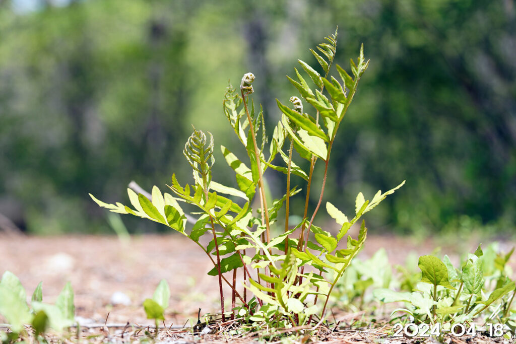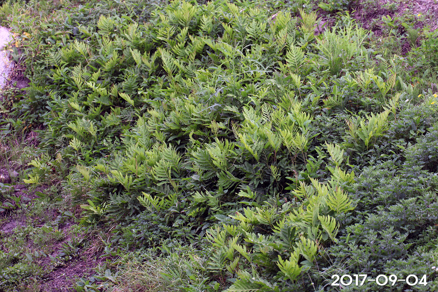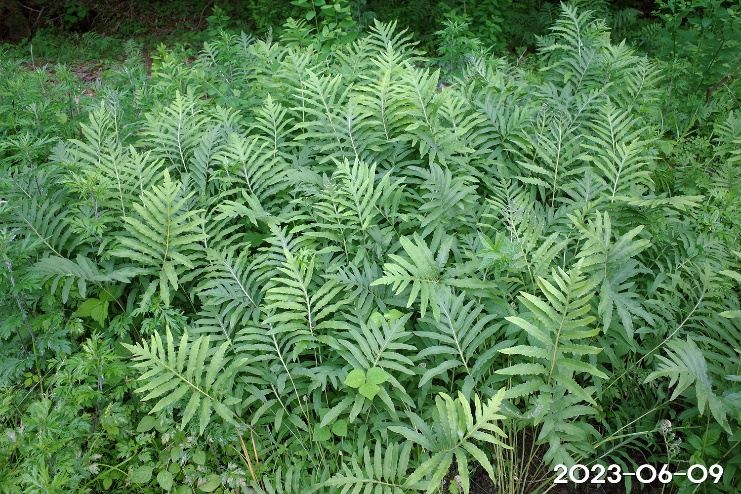 – 영양잎: 잎자루는 길이 10~50cm, 비늘조각은 난형, 길이 2~4mm, 연한 갈색. 잎몸은 삼각상 타원형, 길이 10~30cm, 폭 8~20cm, 우편은 5~11쌍. 우편은 장타원형 또는 피침형, 가장자리에 물결 모양 톱니가 있으며, 위쪽의 우편은 밑이 중축으로 흘러 날개를 이룸