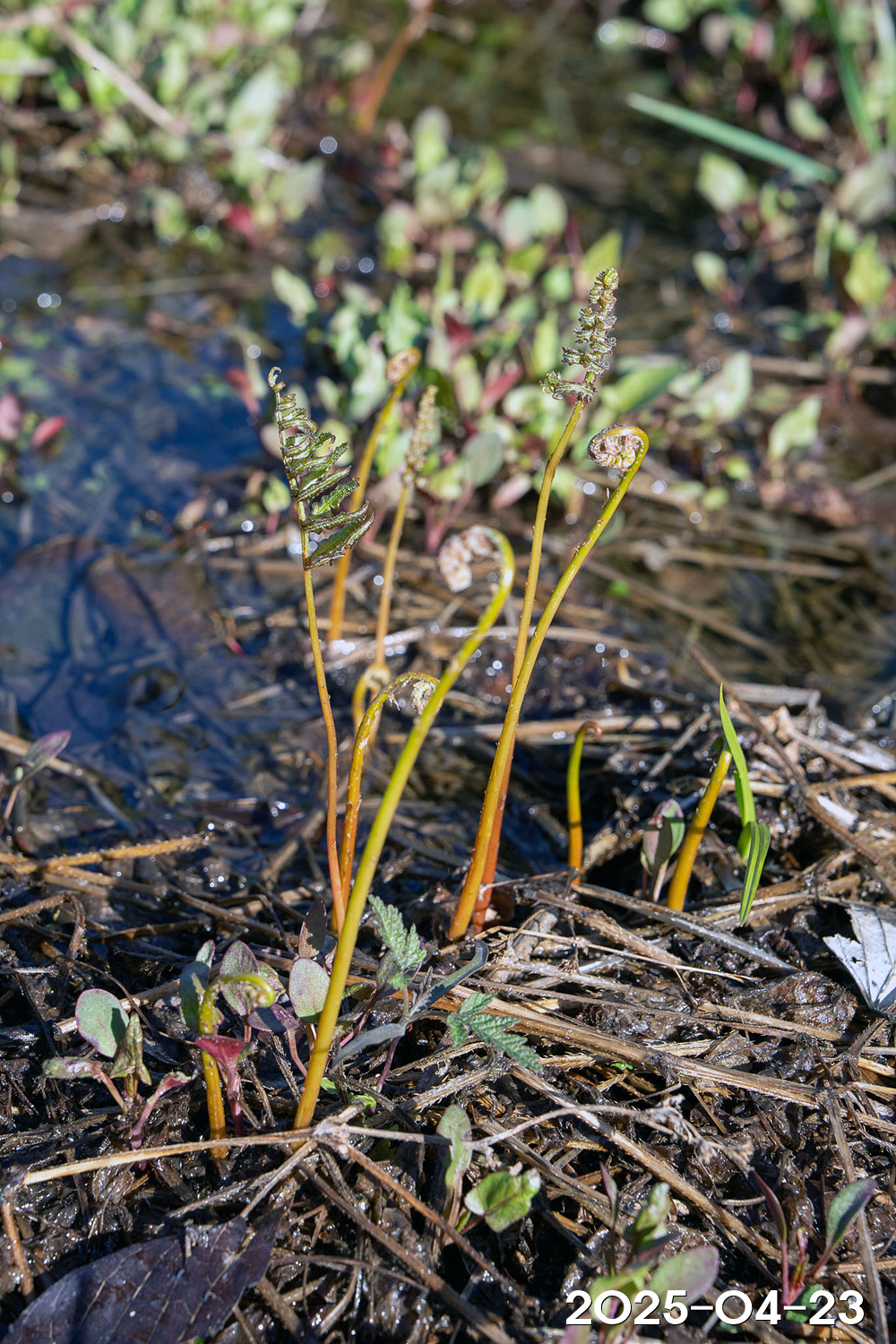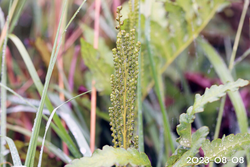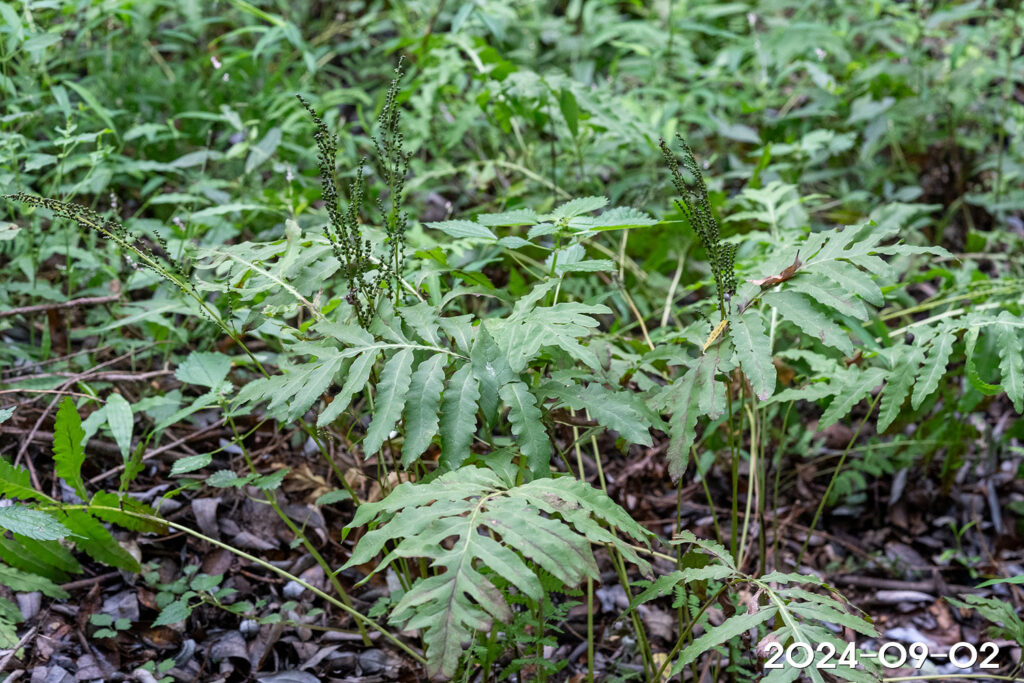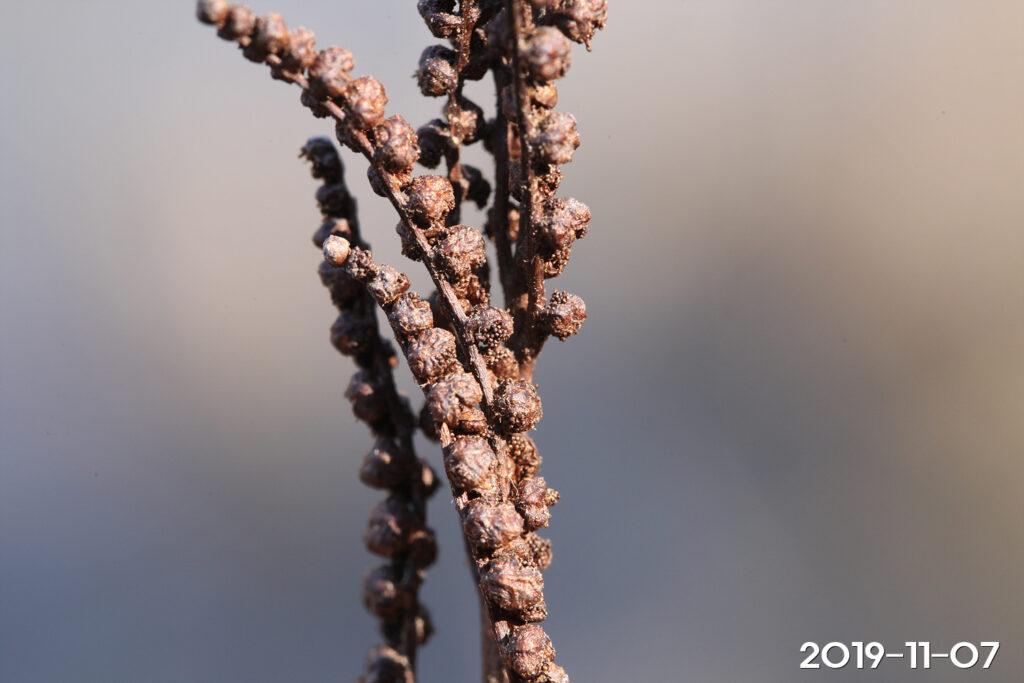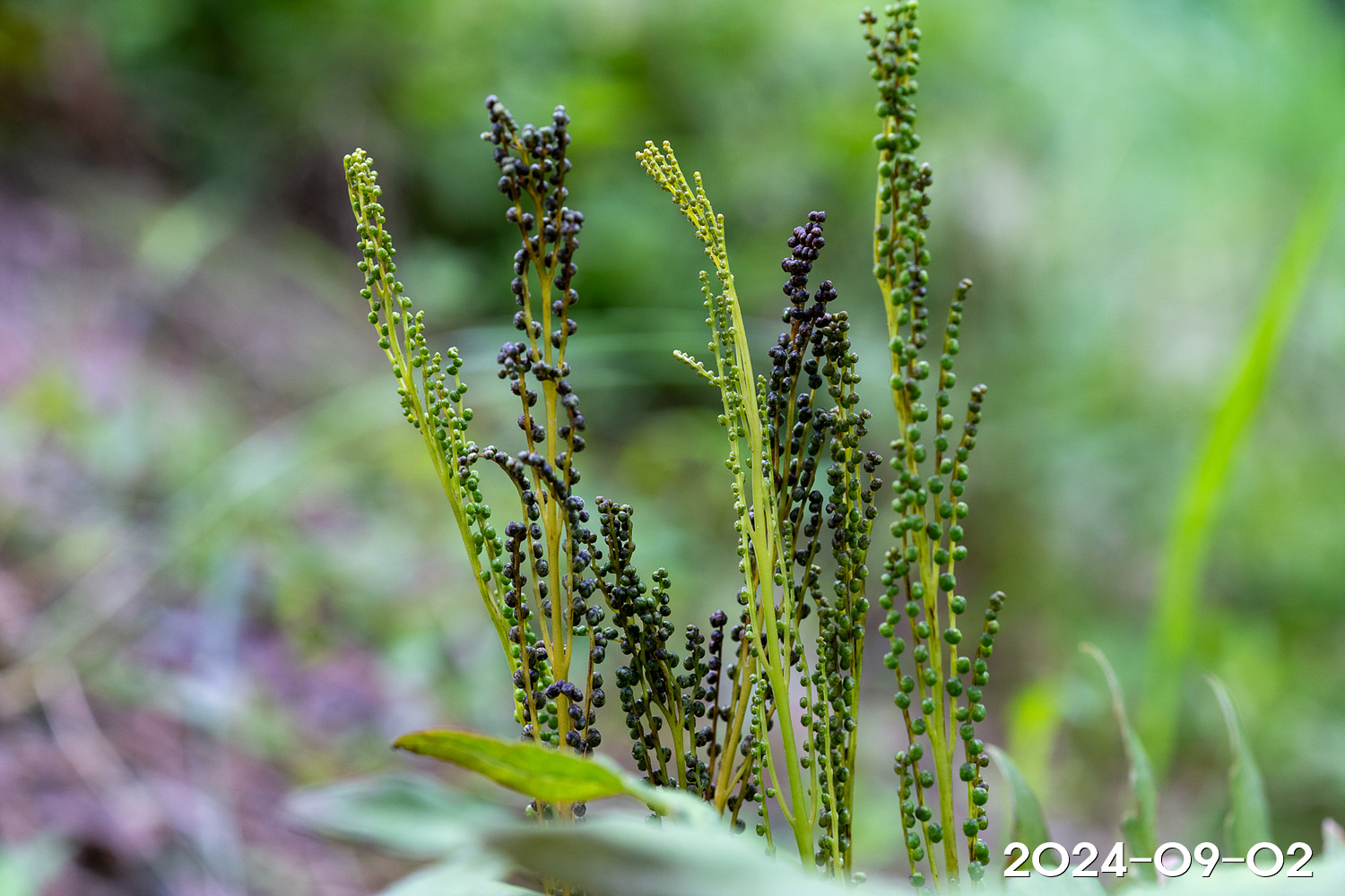 – 포자잎: 2회 깃꼴겹잎이다. 소우편은 잎자루가 없고 구형이며, 우축에 2~3mm 간격으로 배열