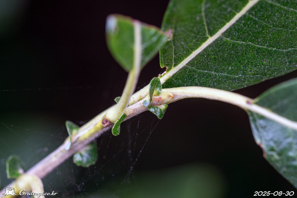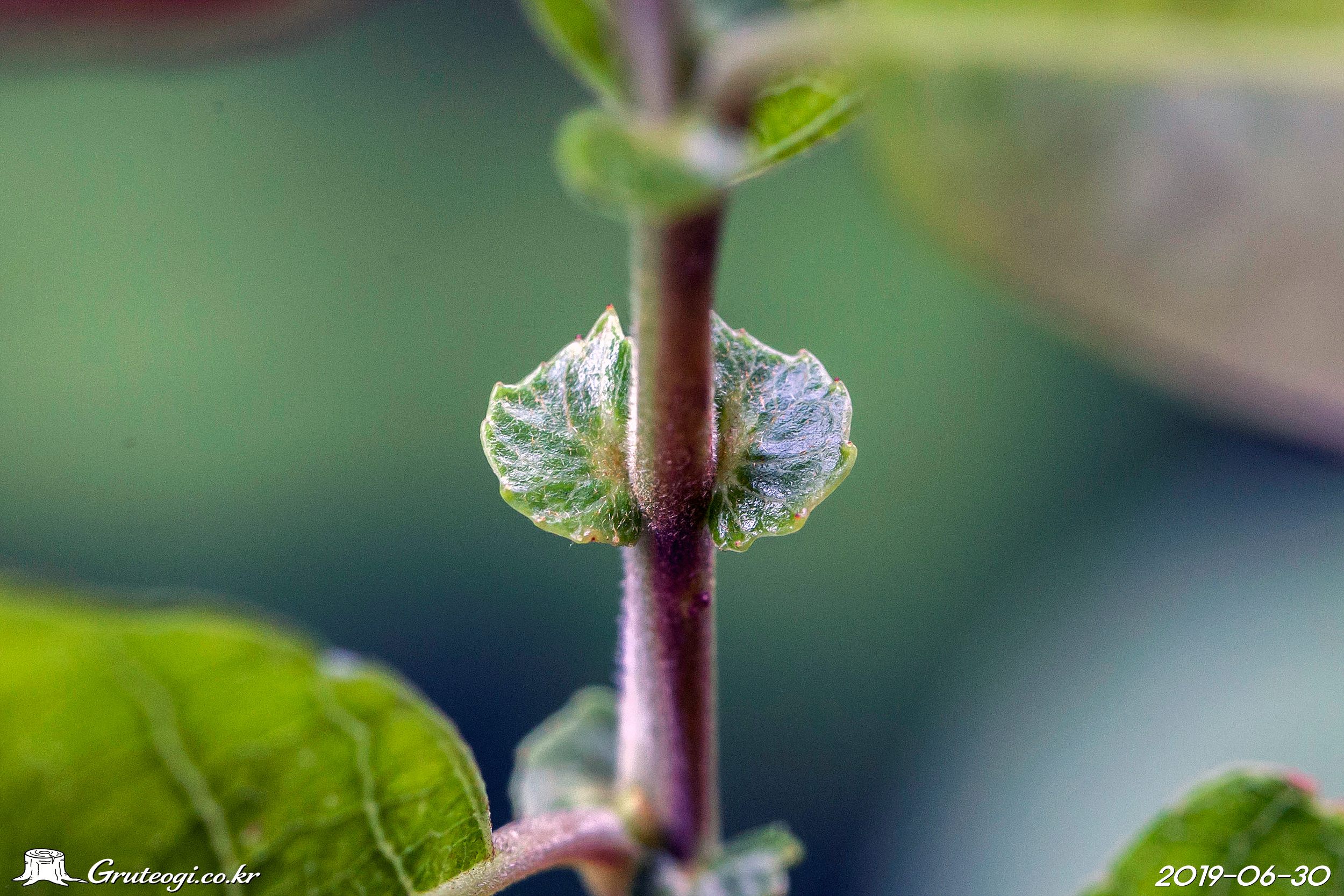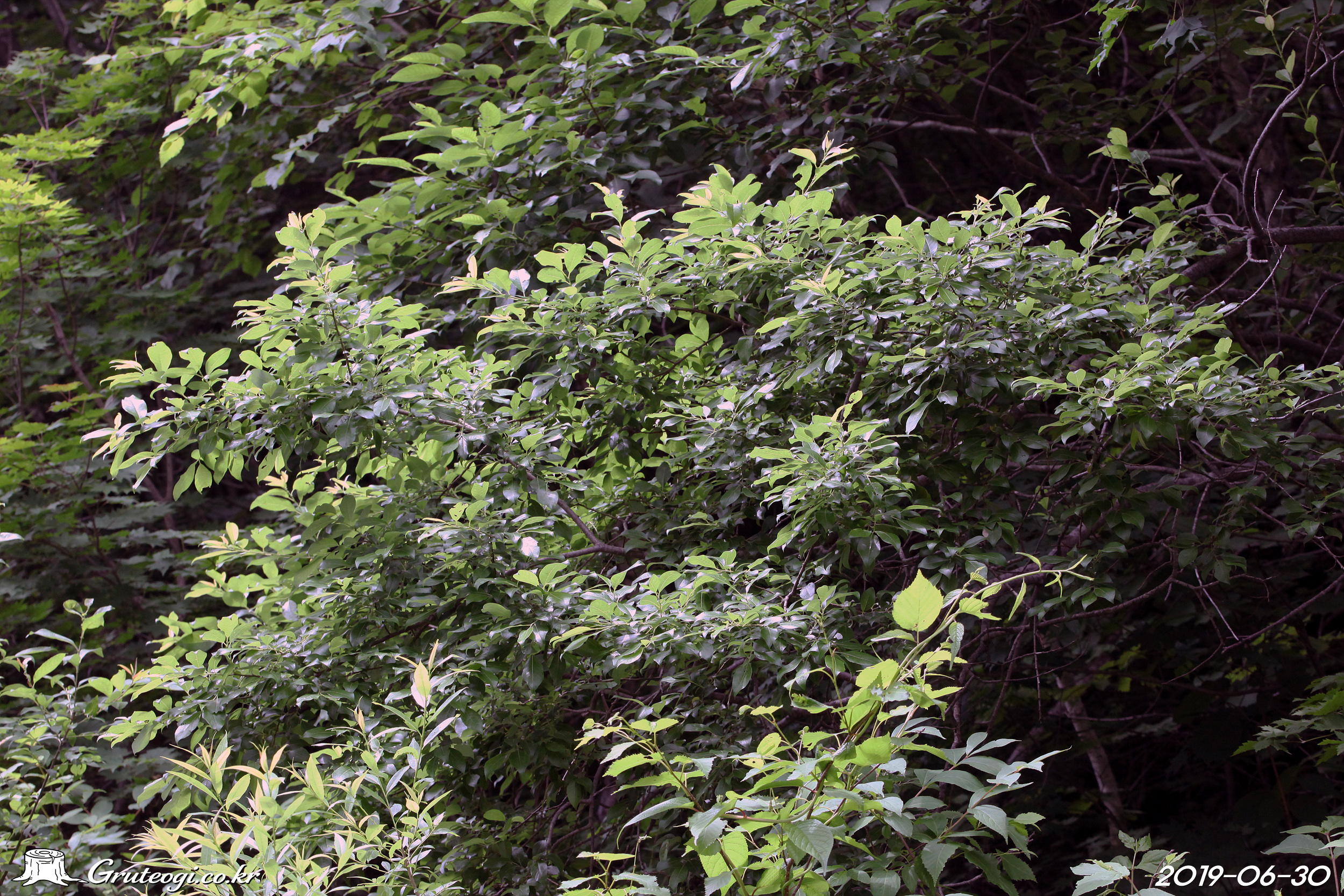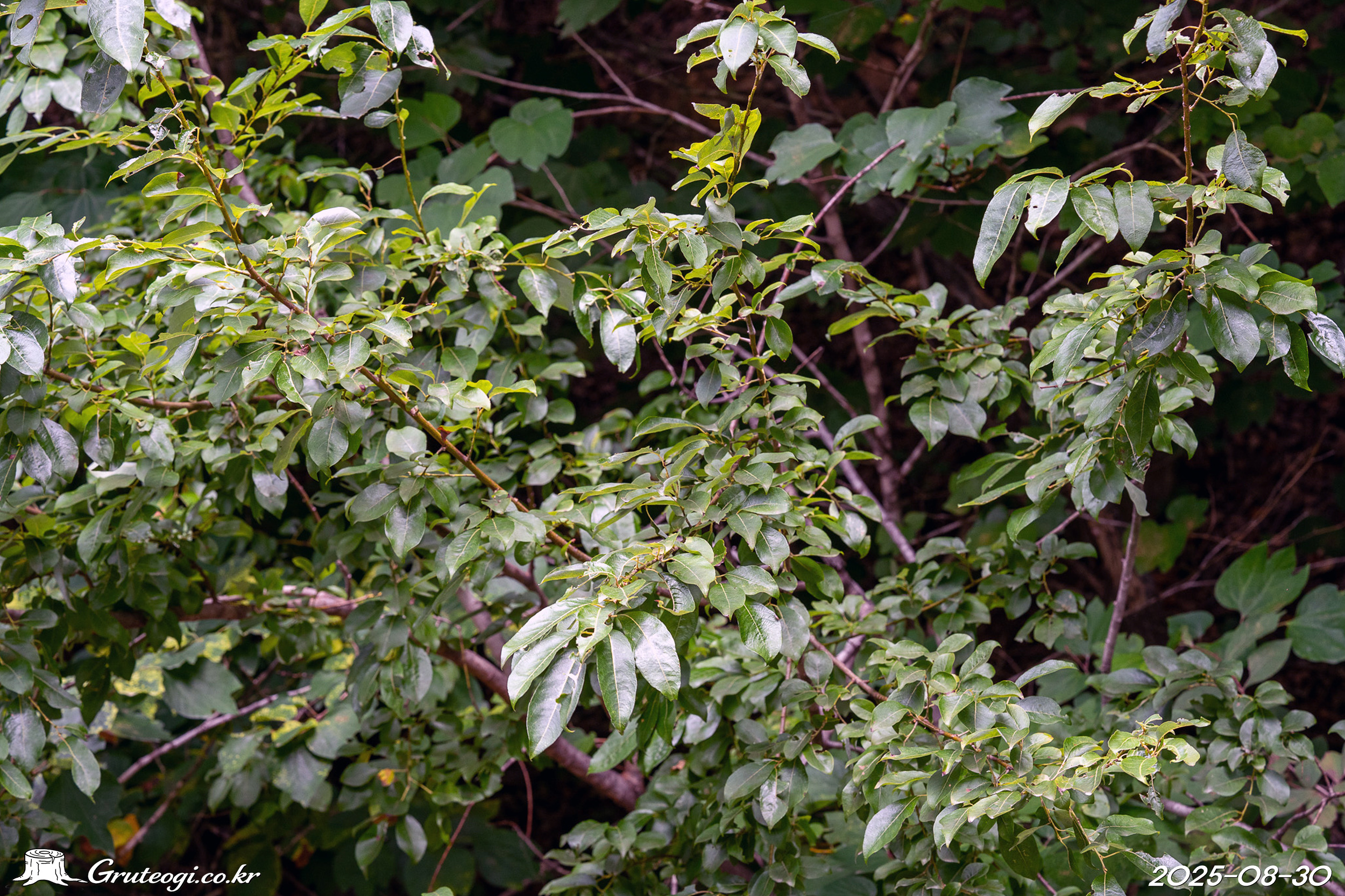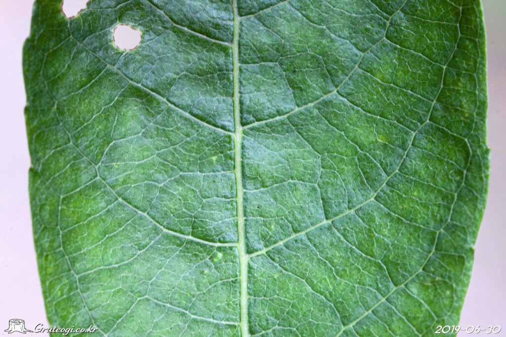 – 잎: 긴 타원형 혹은 타원형, 끝은 뾰족하거나 짧게 점차 뾰족, 가장자리는 톱니가 있거나 밋밋하고, 뒷면은 흰색, 햇가지와 잎에 털이 있음