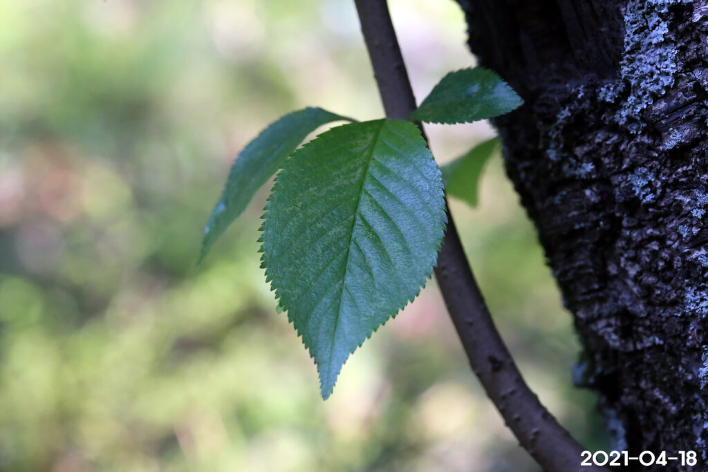 – 잎: 어긋나기, 넓은 피침형 또는 장타원형, 잎끝은 점차 뾰족해지고 밑은 뾰족, 길이 6~10cm, 양면에 털이 있으나 뒷면 맥 위에만 털이 남음, 가장자리에 예리한 톱니 또는 뾰족한 겹톱니가 있음