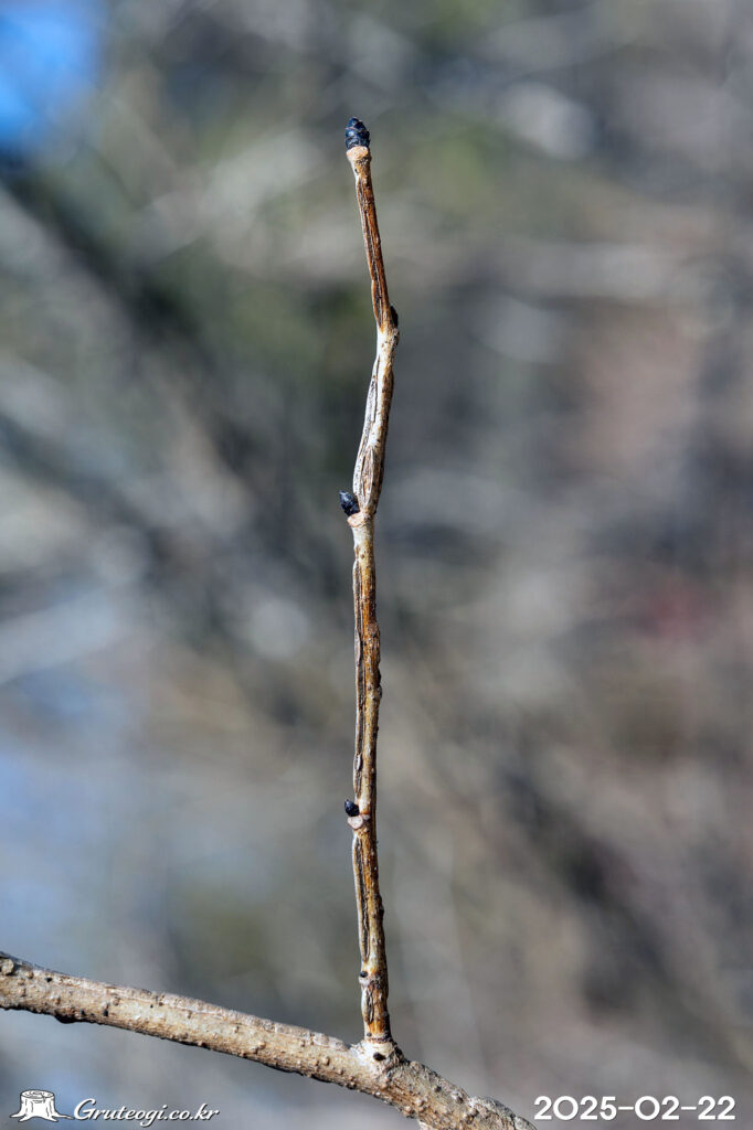 – 줄기: 높이 10~15m. 수피 회흑색, 얕게 세로로 갈라짐. 어린가지는 연한 황갈색 또는 홍갈색, 거센털이 있으며, 가지에는 코르크질의 날개가 있음