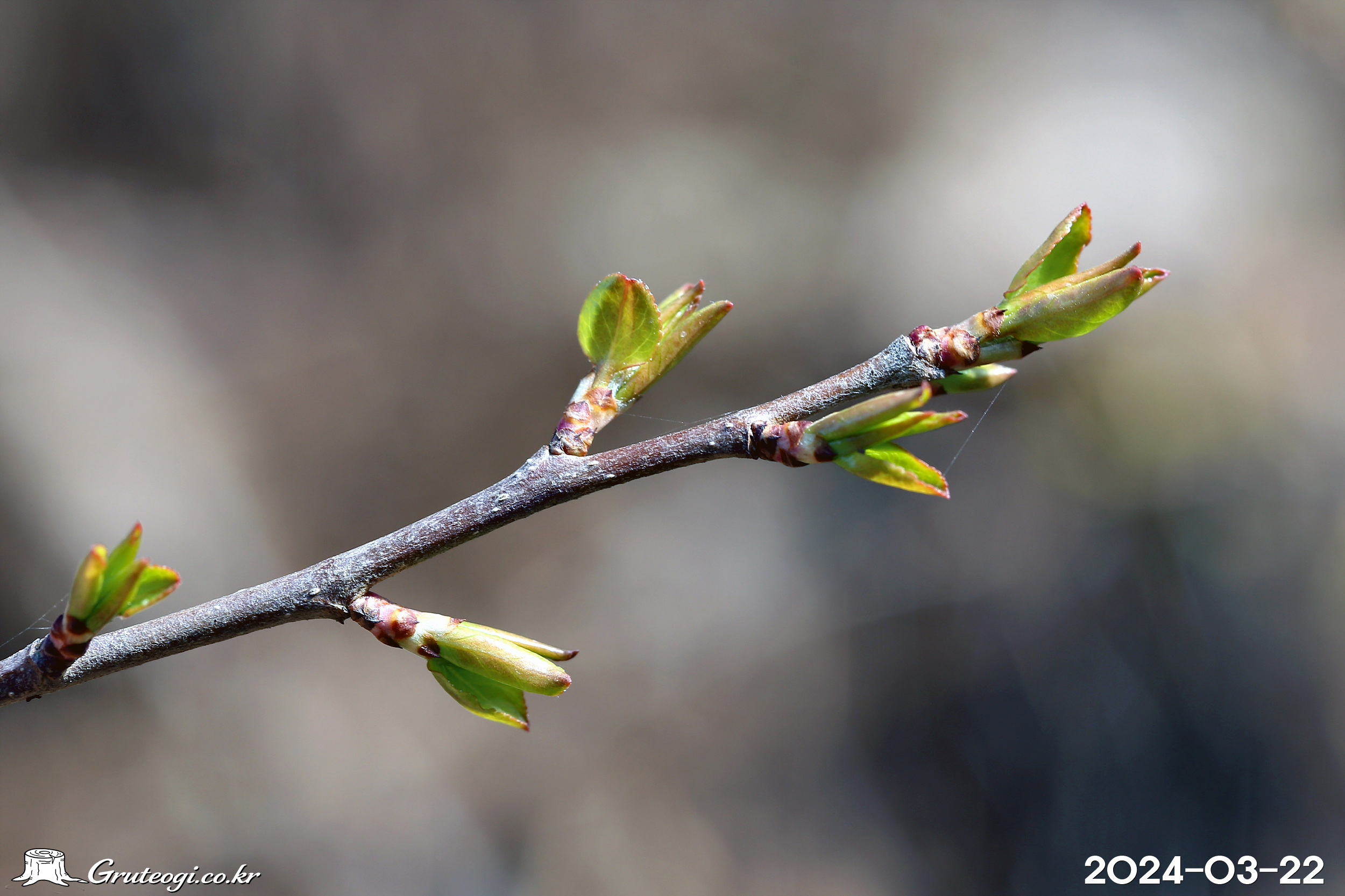 – 잎: 어긋나기, 넓은 난형 또는 원형, 길이 2~5cm. 잎 가장자리에 둔한 잔 톱니가 있으며, 처음에 털이 있으나 없어짐