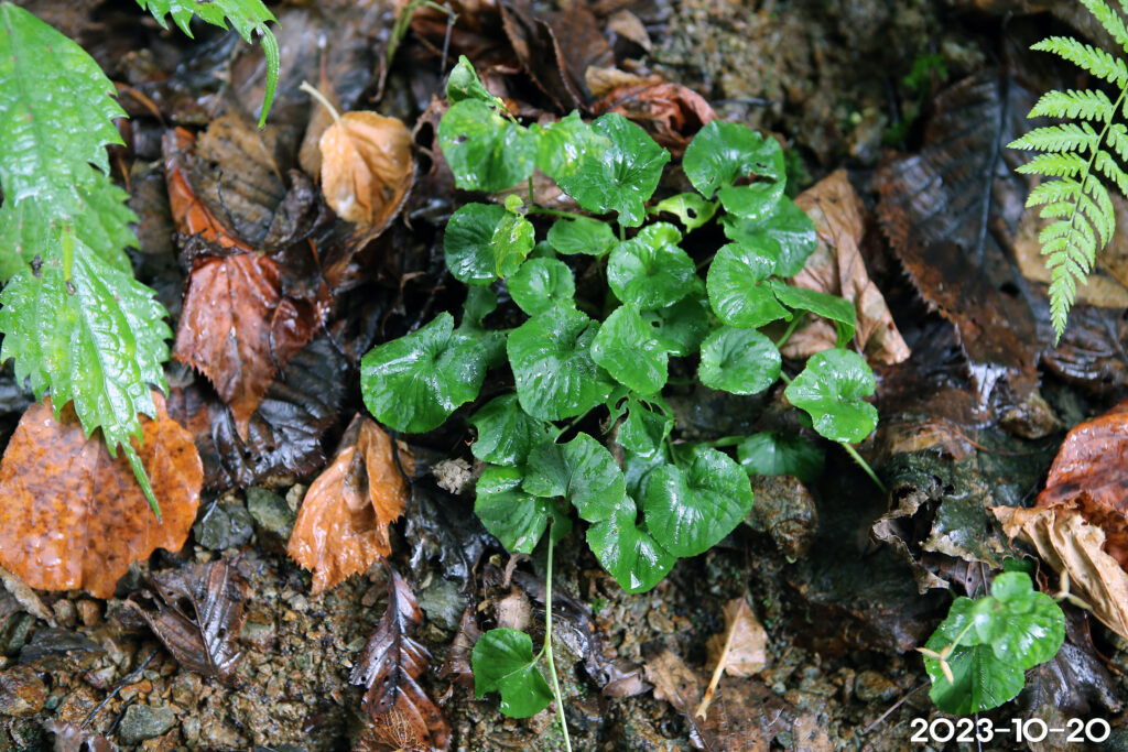 • 근엽 : 털 거의 없음. 원형상 심장형. 점첨두 심장저, 얕은 거치. 화기에도 남음