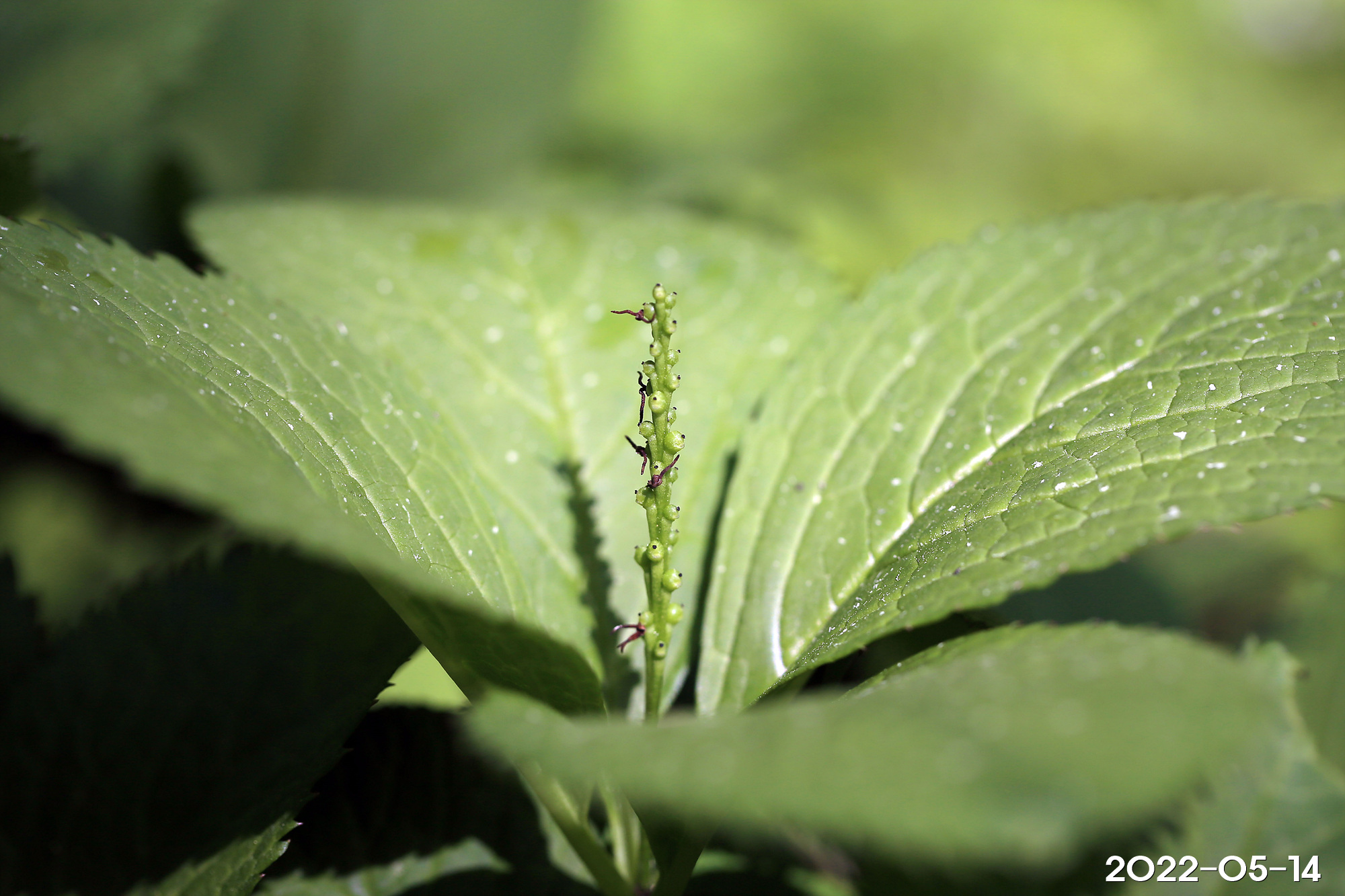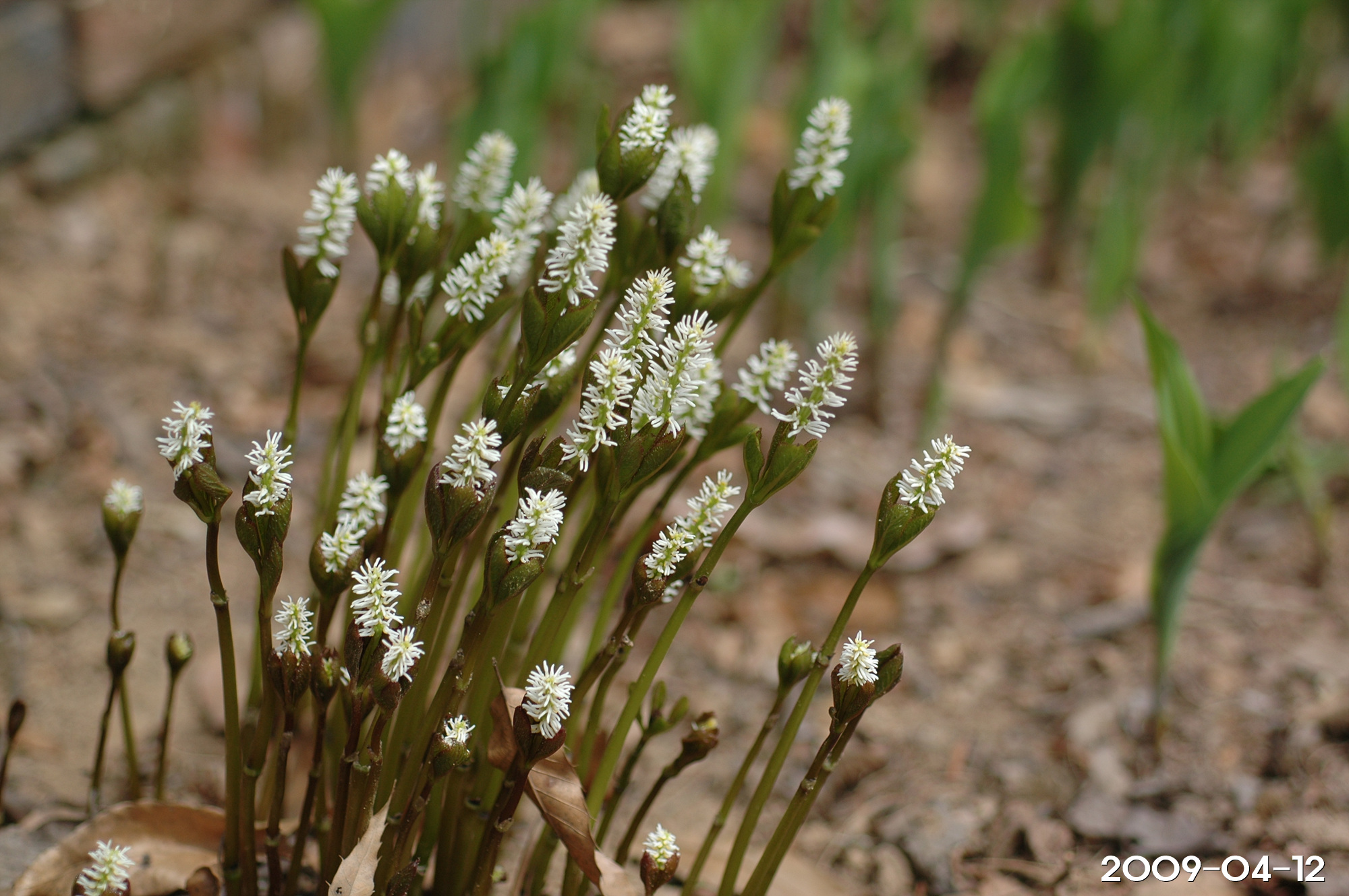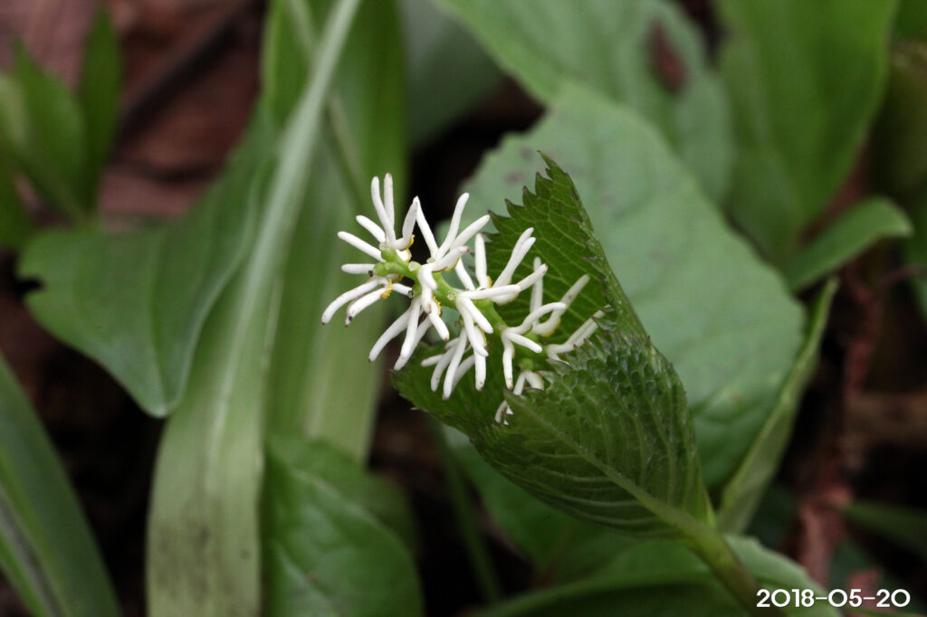 – 꽃차례: 4~5월, 길이 3cm, 줄기 끝의 이삭꽃차례